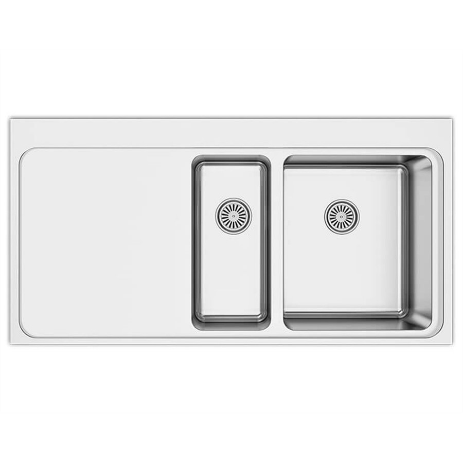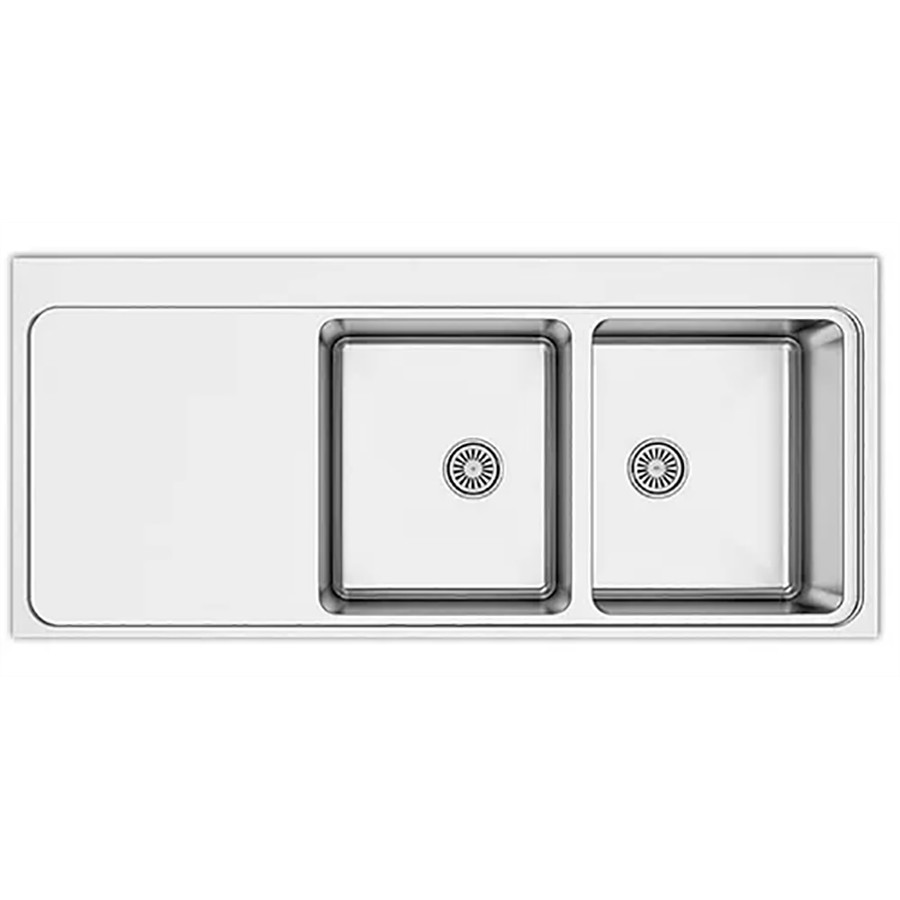 Asil 2 Bowl Sink 116 x 52 cm Left Drain Flush Mount