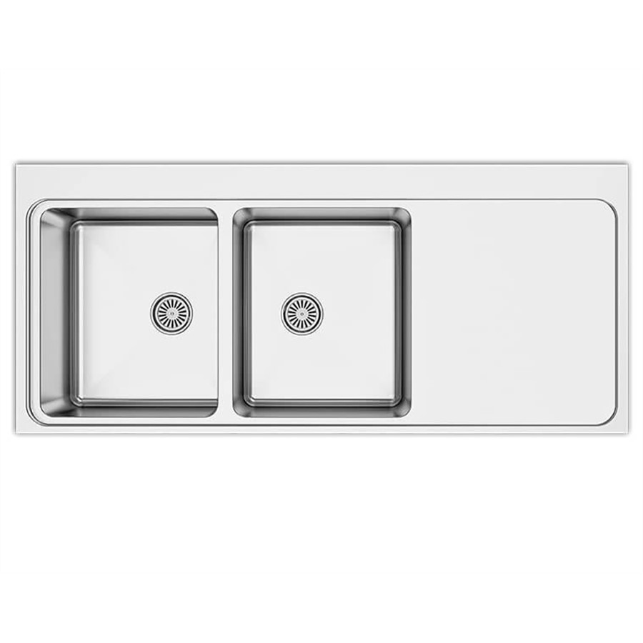 Asil 2 Bowls Sink 116 x 52 cm Right Drain Flush Mount