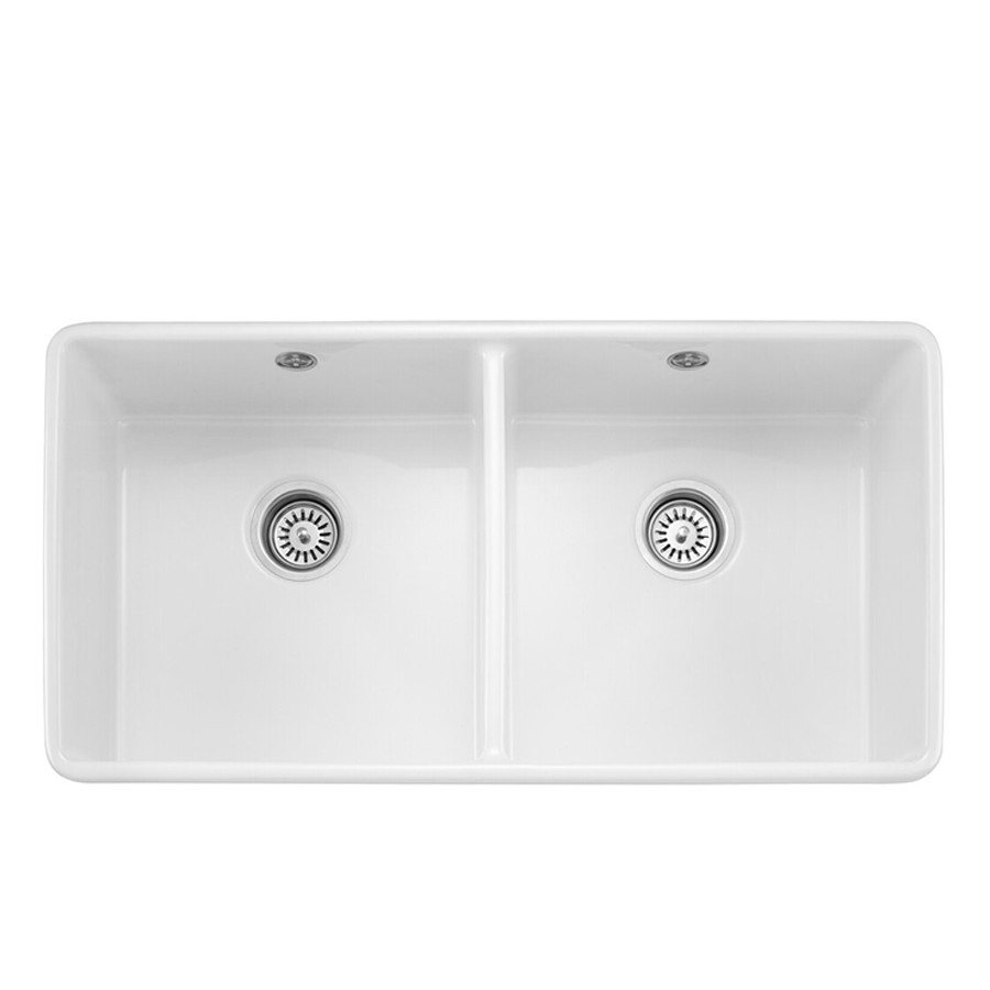 RANGEMASTER Belfast Ceramic 2 Bowl Sink H 22 cm x W 89.5 cm x D 46 cm