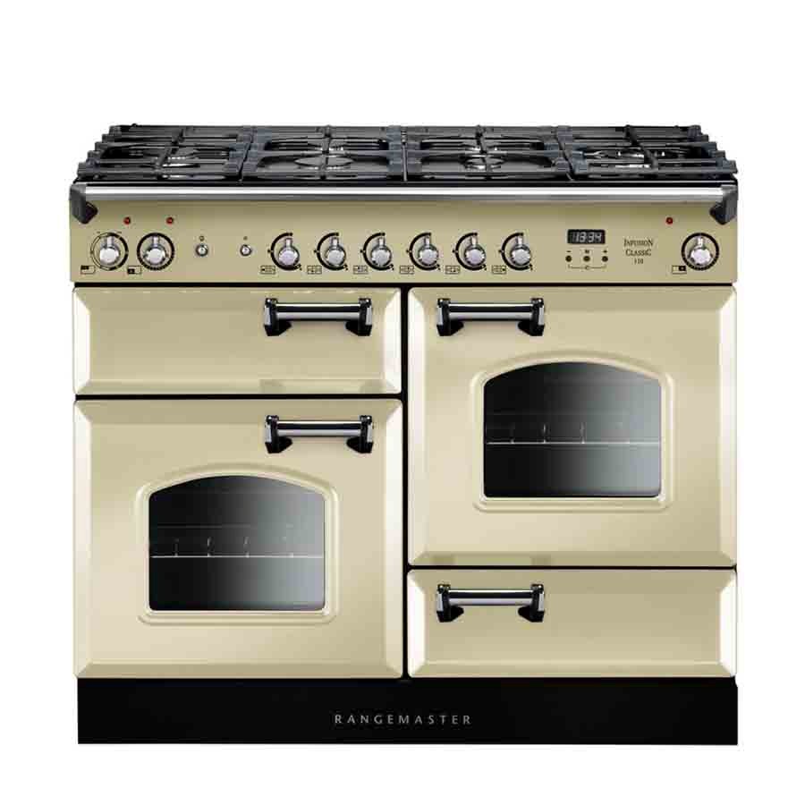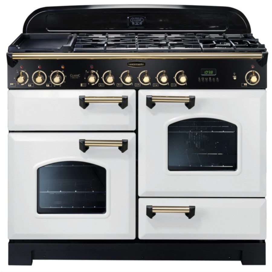 RangeM Class Deluxe Dual Fuel 110 cm White with Brass trim H 90.5/93.0cm x W 109.2cm x D 67.0cm