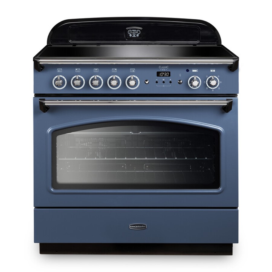 RangeM Class FX 90 cm Induct. Stone Blue With Chrome trim H 90.5/93.0cm x W 90cm x D 67.1cm