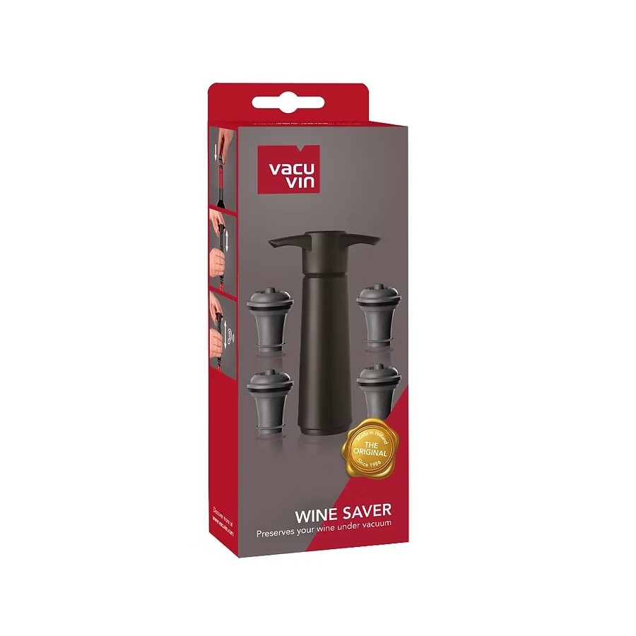 Vacuvin Wine Saver Set Black (1 Pump, 4 Stoppers)