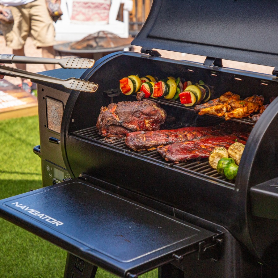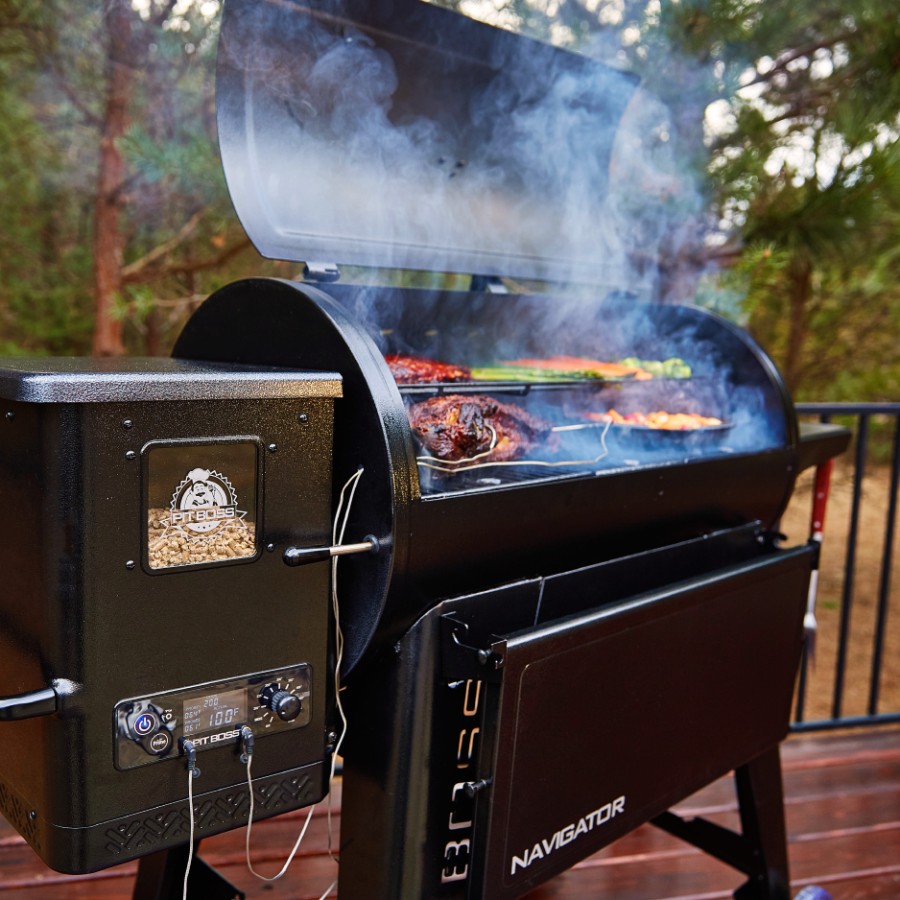 The Pit Boss 850G Navigator Series Grill and Smoker features the real-wood flavor of an outdoor cooking adventure. With advanced grilling technology, premium gauge stainless-steel build, and 100% all-natural hardwood pellet fuel, enjoy Bigger, Hotter, Heavier features that can only come from a Pit Boss grill. The PB850G Series offers 8-in-1 cooking versatility, to smoke, bake, braise, roast, grill, barbecue, char-grill, and sear - all in one. Dial in heat ranging from 82° to 260°C and achieve instant direct or indirect heat using the innovative slide-plate flame broiler. Then, use the digital control board and stainless-steel meat probes to track temperatures while the Navigator does all the work for you.