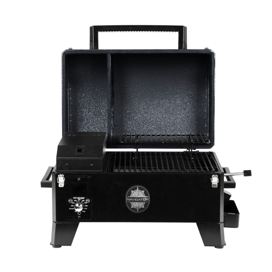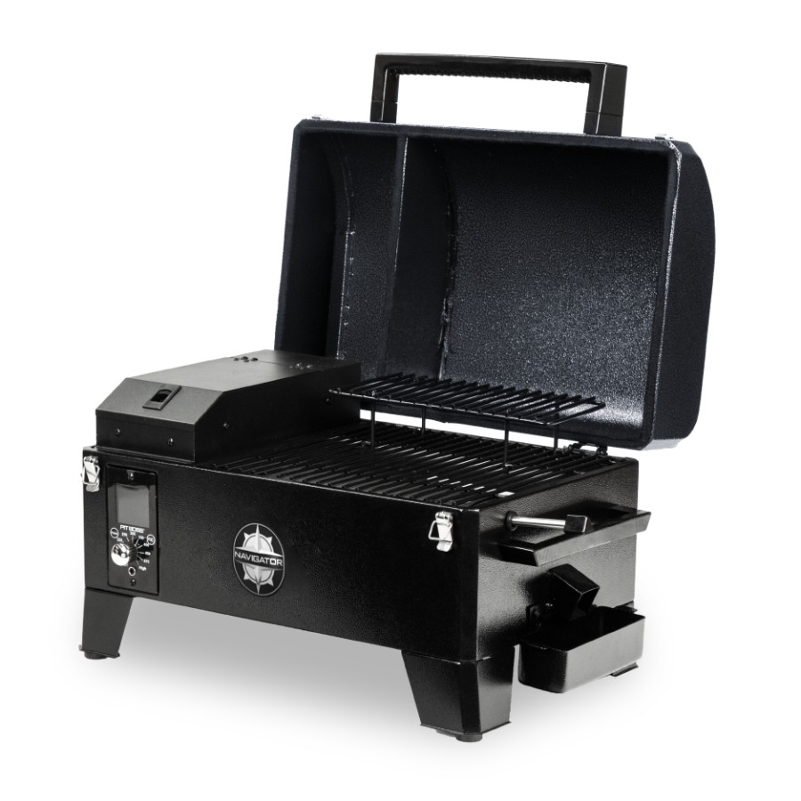 Bring bold wood-fired foods everywhere you go with the Navigator 150 Portable Wood Pellet Grill from Pit Boss®. This grill features more than 1,600 square centimeters of porcelain-coated steel cooking space, so you can prepare everything from meals for two, to whole smoked briskets. Thanks to its lightweight design and a latching hood, the Pit Boss® Navigator 150 Portable Pellet Grill is ready to travel whenever and wherever you go. With the digital temperature control board, considerable temperature range, and automatic start up and cool down technology, this portable grill provides robust versatility in an innovative compact package.