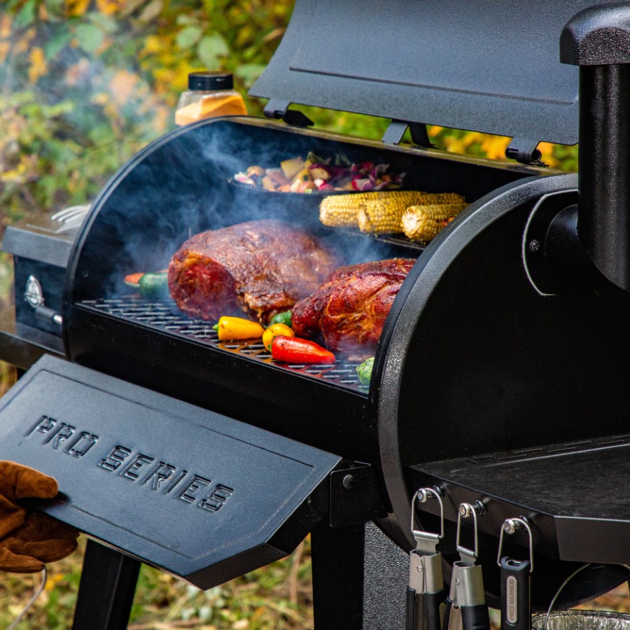 The Pit Boss Pro Series 850 is Bigger, Hotter, Heavier…and Now Smarter! The PB850PS2 Wood Pellet Grill features a digital PID control board and advanced technology for even temperatures, more all-natural hardwood smoke, and convenient Wi-Fi and Bluetooth compatibility. Using our Smoke IT app, get ready to maximize your grilling experience by controlling temperature settings, monitoring your grill’s meat probes, and more. The PB850PS2 Wood Pellet Grill has an 5,484 square centimeter cooking area with two tiers of removable cooking grids. This powerful machine delivers unbeatable results using 100% all-natural hardwood fuel.