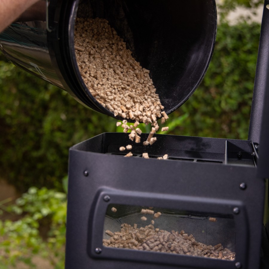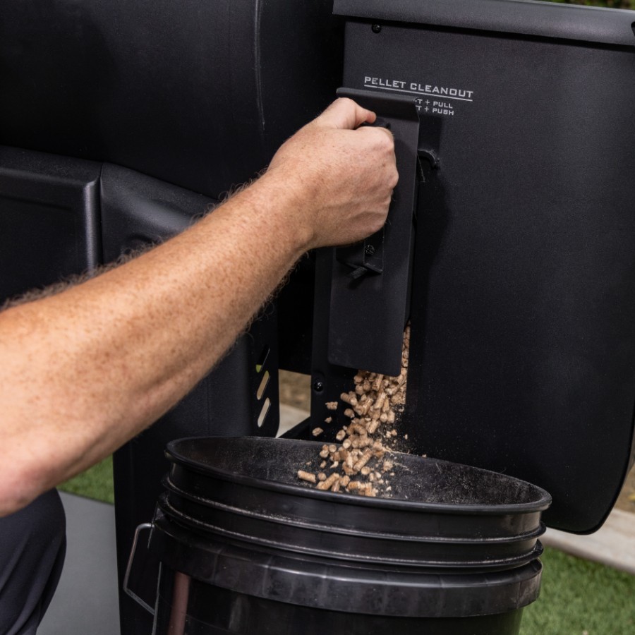 Produce real wood taste with the 11.8 kg hopper that contains an easy-access cleanout system. The PB1600CS Wood Pellet Grill allows you to grill confidently with its heavy-duty steel construction, matte black finish, 2 in-line style wheels, 2 locking caster wheels, and automatic start and cool down.