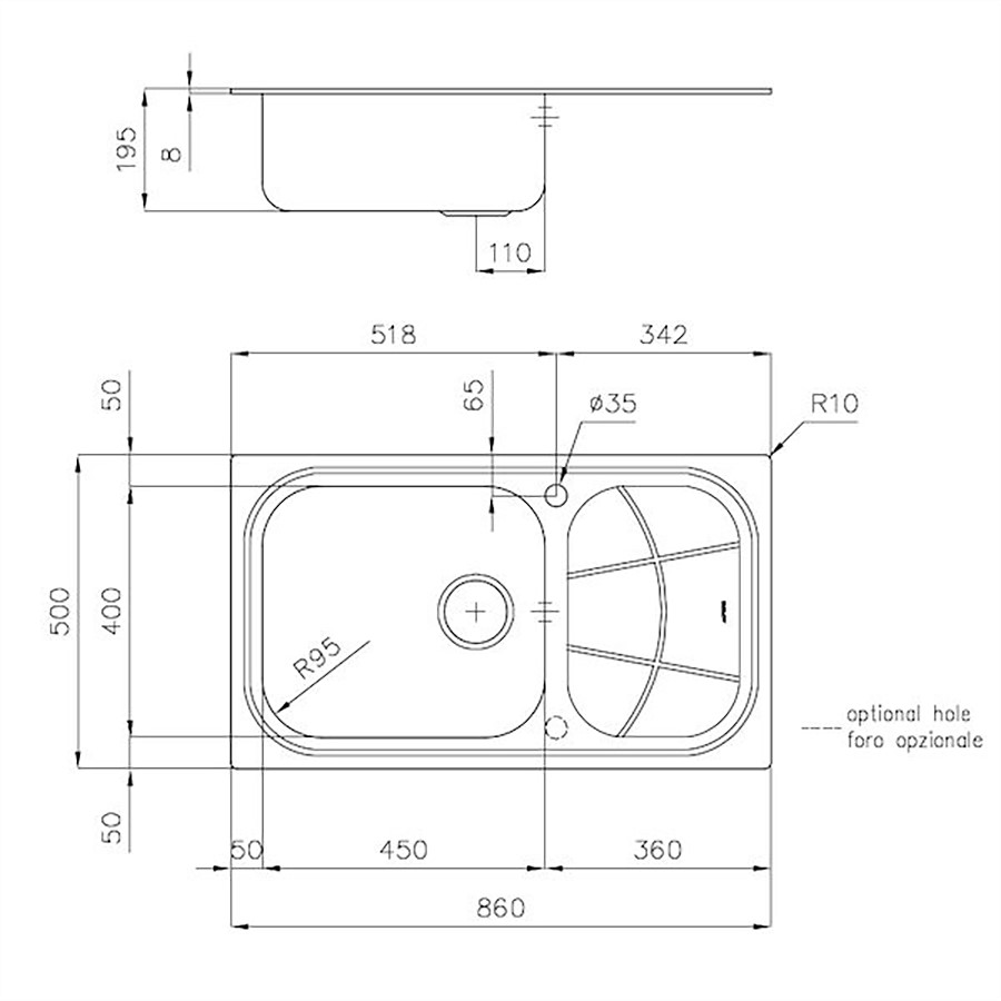 The Foster Sink Big Bowl is designed to meet the needs of modern kitchens while offering exceptional durability and functionality. One of its key features is the availability of 2nd and 3rd holes, which allow for customization according to your preferences. These additional holes can accommodate double-hole mixers, remote-controlled drains, or soap dispensers, with their positions clearly marked on the sink drawings using dotted lines for easy reference.