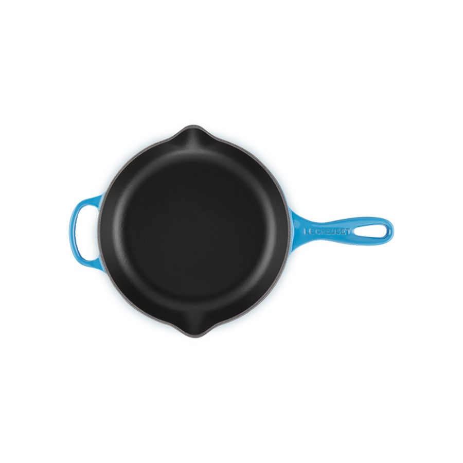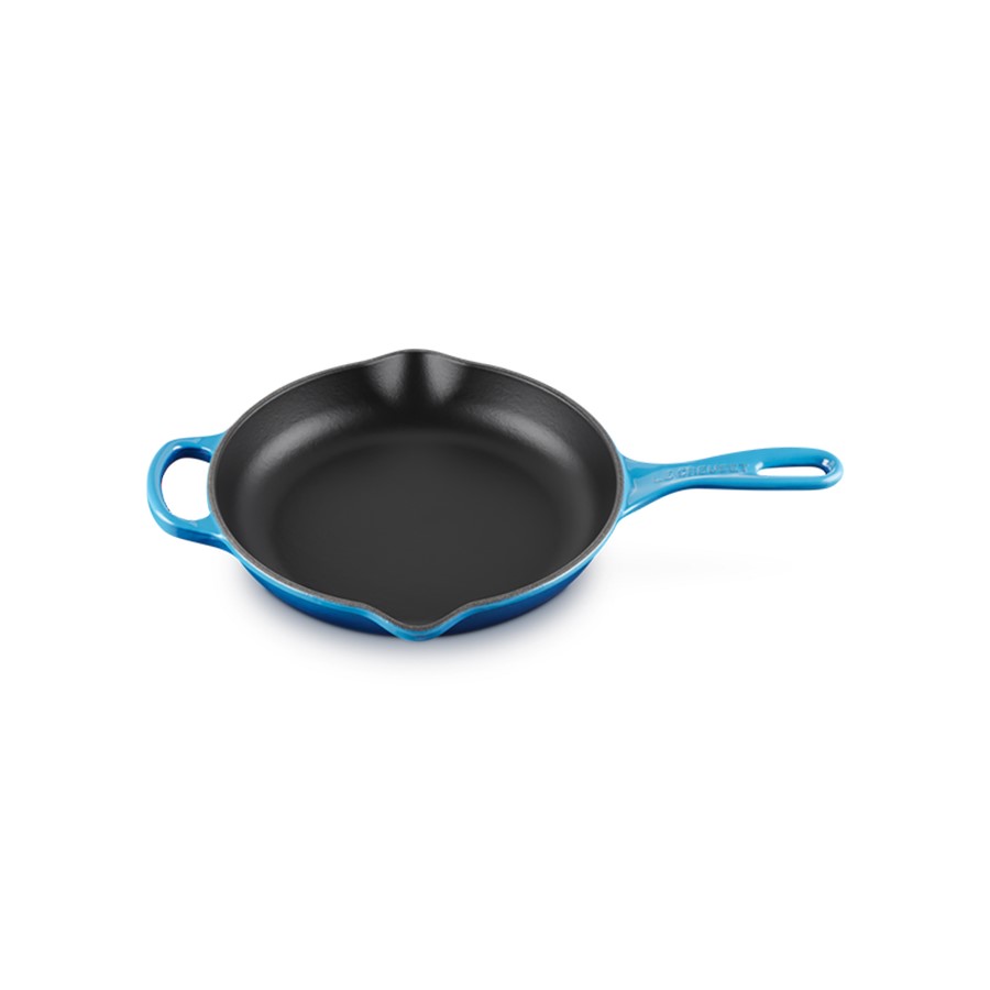The Le Creuset 23cm skillet is a versatile and durable kitchen essential, crafted from high-quality cast iron for superior heat retention and even distribution. Its enamel coating provides a non-reactive, easy-to-clean surface, perfect for searing, frying, and sautéing. The skillet features a helper handle for effortless maneuvering and a pour spout for drip-free serving. Suitable for all heat sources, including induction, it seamlessly transitions from stovetop to oven. While dishwasher safe, hand washing is recommended to maintain its pristine condition and long-lasting performance.