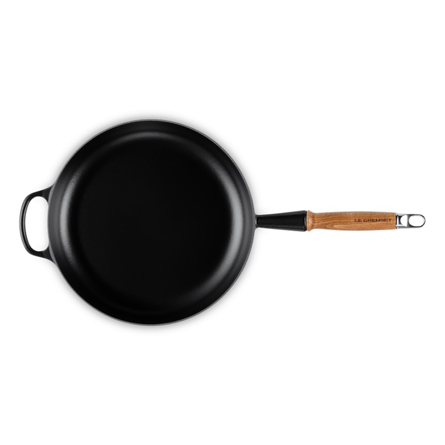 The Le Creuset Cast Iron Frying Pan with Wooden Handle blends classic cast iron durability with modern design. The enameled cast iron ensures excellent heat retention and even cooking, perfect for a variety of dishes. It is oven safe, withstanding high temperatures for versatile cooking methods. The wooden handle offers a comfortable grip but should be hand washed to preserve its quality, as the pan itself is not dishwasher safe. Ideal for searing, frying, and sautéing, this frying pan combines functionality with timeless style, making it a kitchen staple.