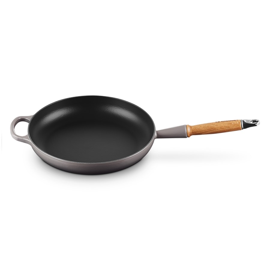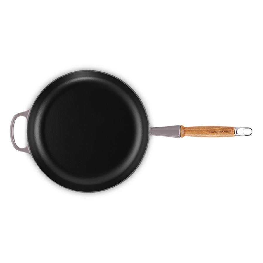 The Le Creuset Cast Iron Frying Pan with Wooden Handle blends classic cast iron durability with modern design. The enameled cast iron ensures excellent heat retention and even cooking, perfect for a variety of dishes. It is oven safe, withstanding high temperatures for versatile cooking methods. The wooden handle offers a comfortable grip but should be hand washed to preserve its quality, as the pan itself is not dishwasher safe. Ideal for searing, frying, and sautéing, this frying pan combines functionality with timeless style, making it a kitchen staple.