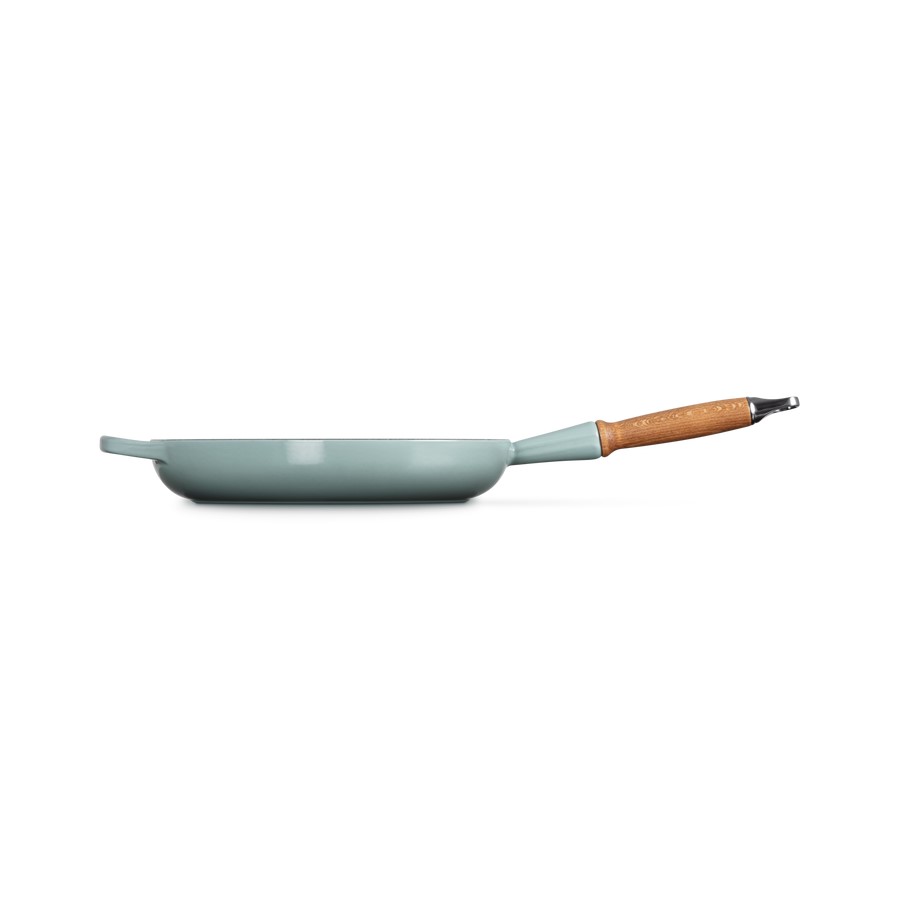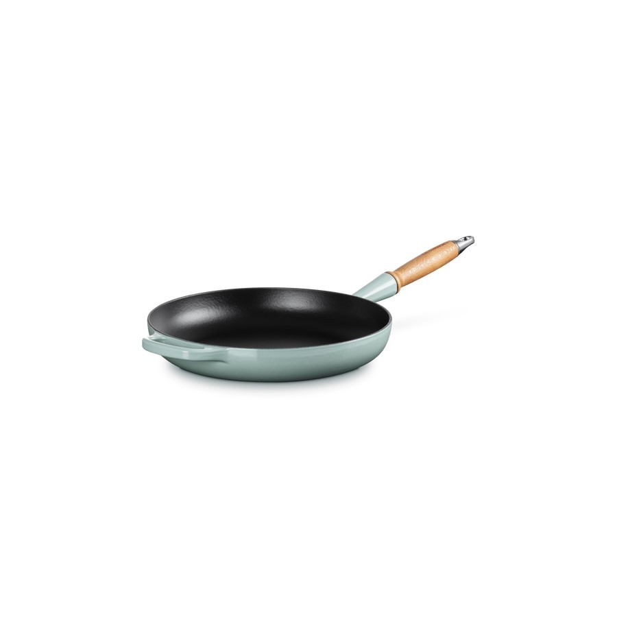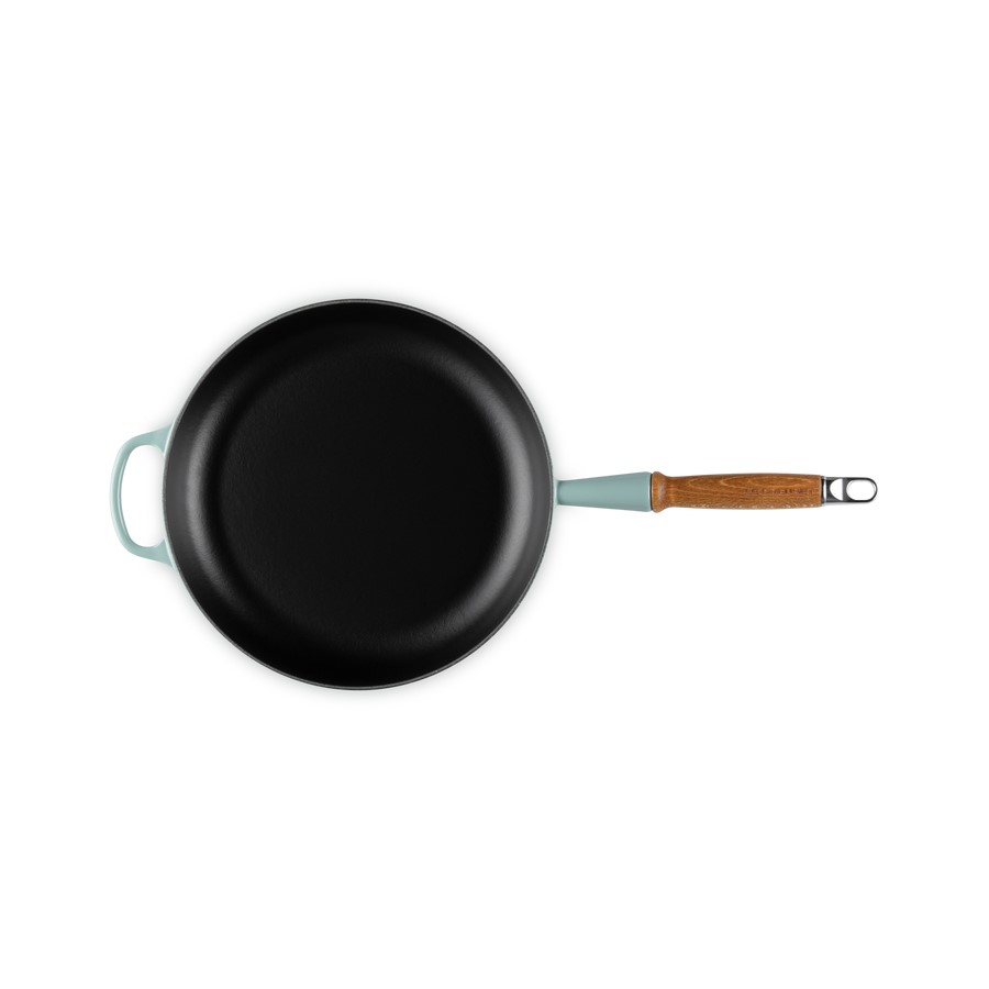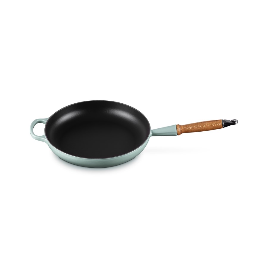 Perfect for everyday cooking, this cast iron Signature Frying Pan delivers exceptional performance with even heat distribution that locks in moisture, nutrients, and flavor. Whether you're searing, sautéing, or browning, it delivers consistent results every time. The stay-cool wooden handle has been ergonomically redesigned for comfort and control, while the integrated helper handle ensures a secure grip when lifting. A convenient hanging hook allows for easy storage, making it as practical as it is beautiful.