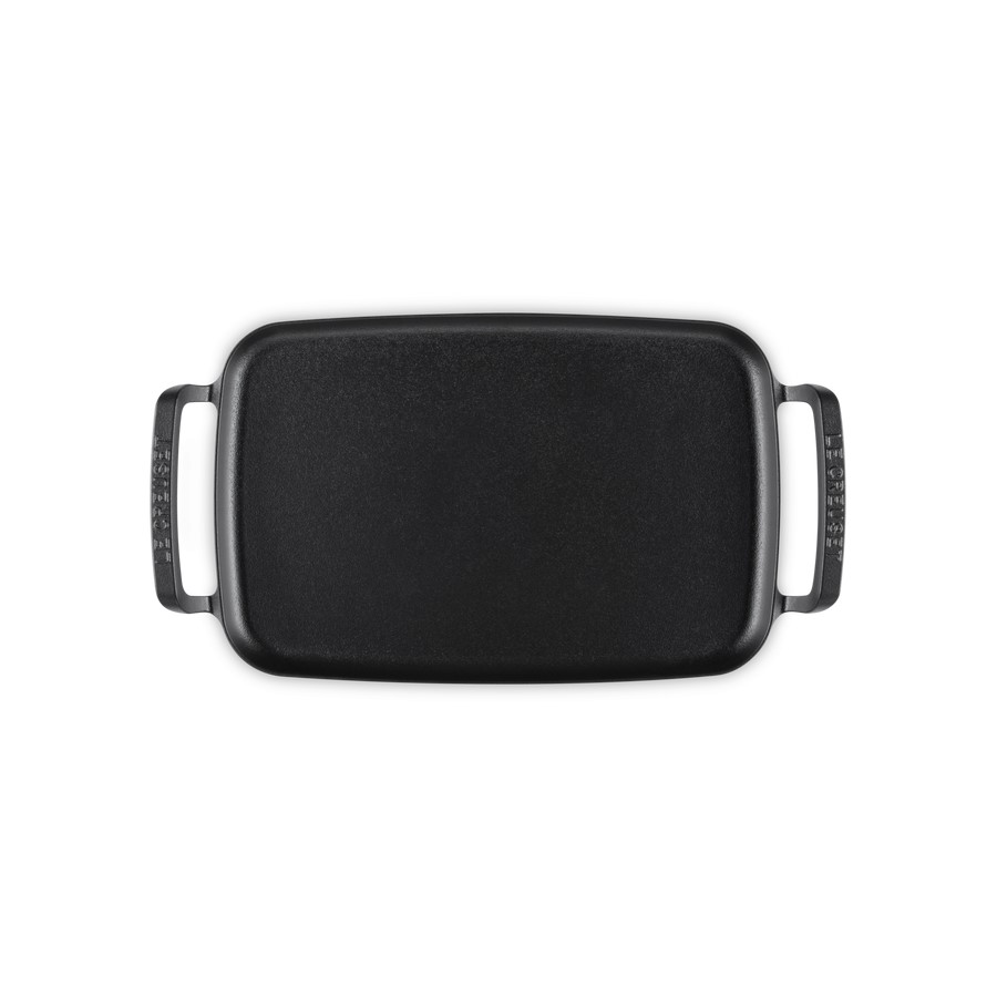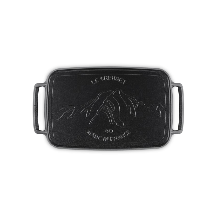The Le Creuset Outdoor Cast Iron Rectangular Griddle in Matte Black is a premium piece from Le Creuset's BBQ Outdoor Collection, designed specifically for outdoor cooking. Crafted from high-quality enameled cast iron, it offers exceptional heat distribution and retention, ensuring your food cooks evenly. The matte black enamel is specially developed for outdoor use, resistant to high temperatures up to 450°C, and requires no seasoning. Its compact design allows for easy handling and is suitable for use on non-adjustable heat sources.