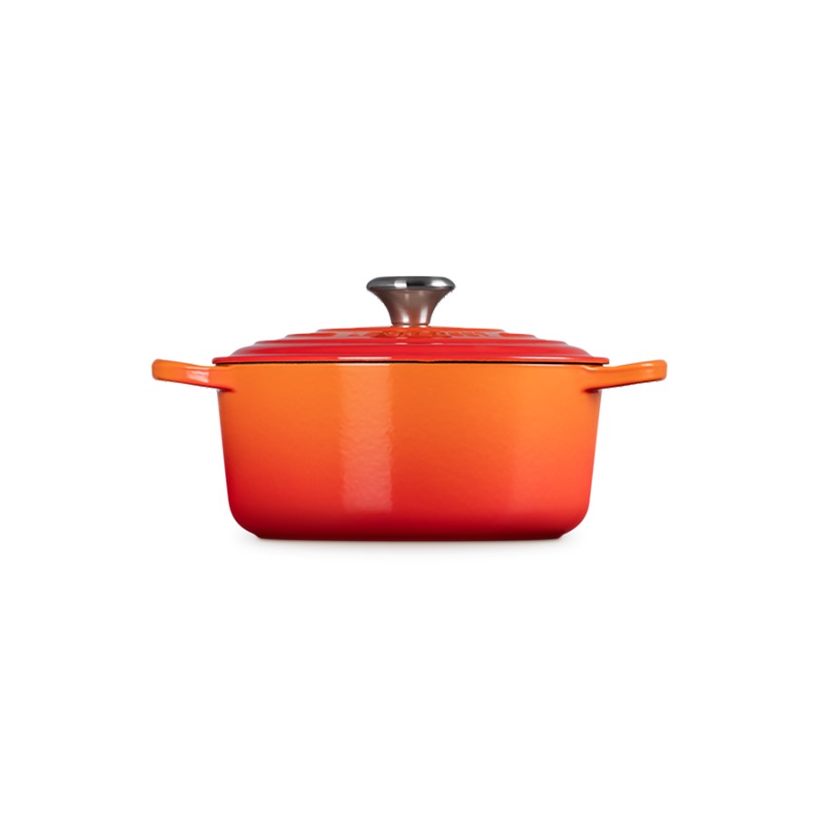 The Le Creuset Round Casserole in Flame, 24 cm, epitomizes both durability and culinary sophistication. Crafted from robust cast iron, it ensures superior heat distribution and retention, perfect for slow-cooking, baking, and braising. The vibrant Flame color adds a bold and energetic touch to any kitchen, complementing Le Creuset's iconic enamel finish. Sized ideally for larger meals or gatherings, this casserole dish combines aesthetic appeal with practical functionality, making it an essential piece for both home cooks and culinary professionals who appreciate high-quality cookware that enhances cooking performance and kitchen ambiance.