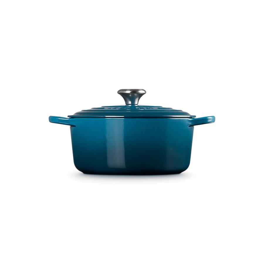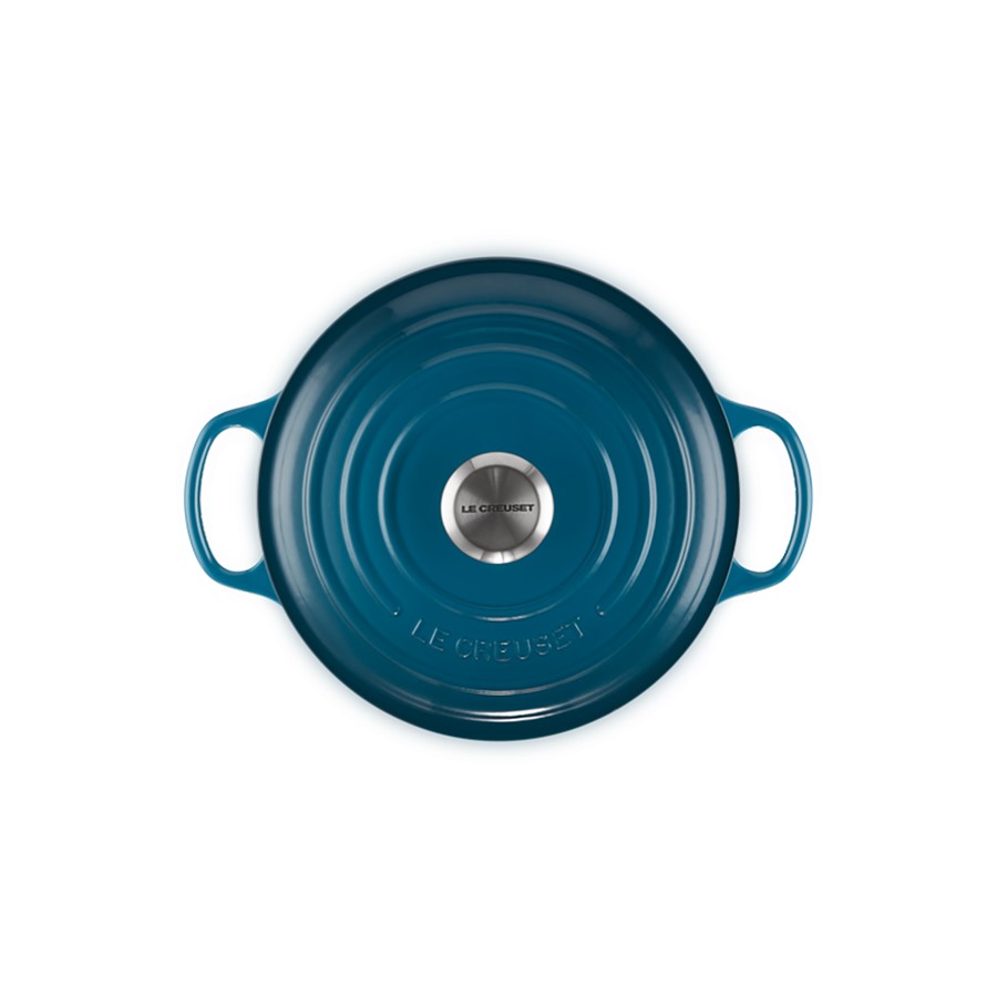 The Le Creuset Round Casserole in Deep Teal, 24 cm, combines sturdy craftsmanship with a touch of sophistication. Crafted from durable cast iron, it ensures superior heat distribution and retention, perfect for slow-cooking, baking, and braising. The Deep Teal color adds a rich and elegant hue to any kitchen, complementing Le Creuset's renowned enamel finish. Sized ideally for larger meals or gatherings, this casserole dish blends practical functionality with aesthetic appeal, making it a versatile choice for chefs and home cooks who appreciate premium-quality cookware that enhances both cooking performance and kitchen decor.