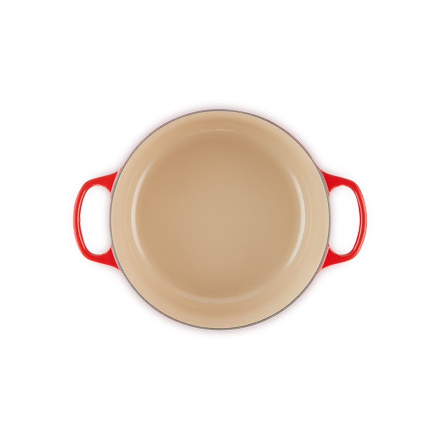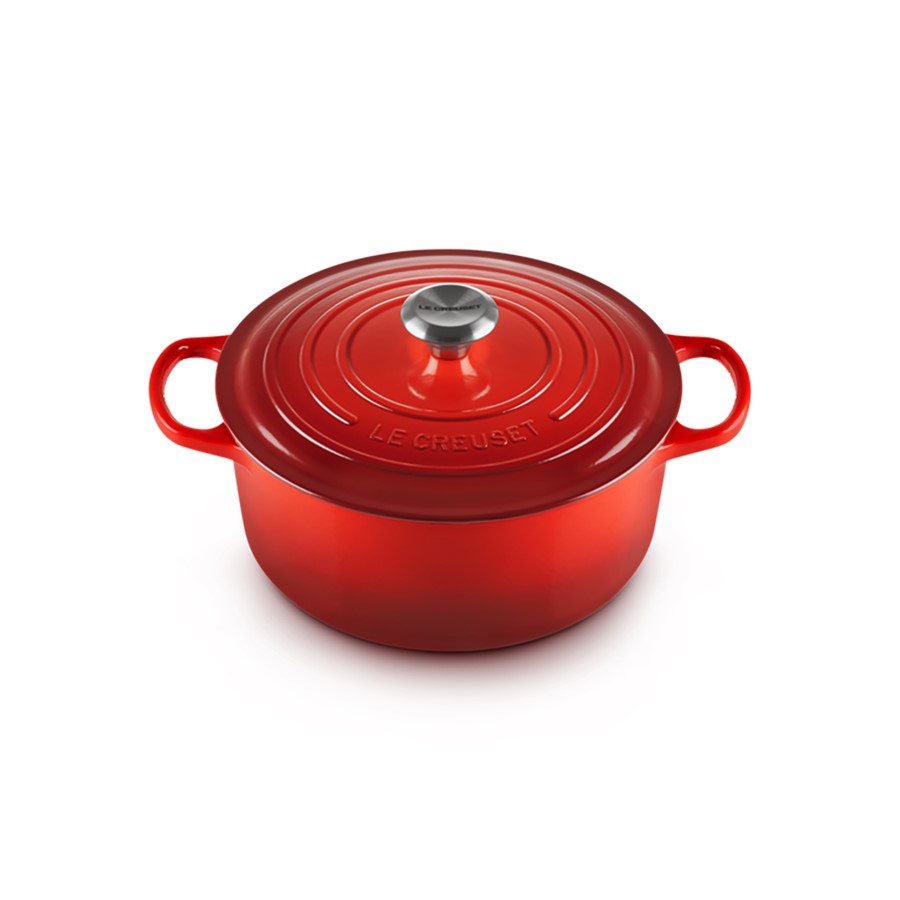 The Le Creuset Round Casserole in Cerise, 26 cm, combines outstanding craftsmanship with vibrant style. Made from durable cast iron, it ensures superior heat distribution and retention, ideal for slow-cooking, baking, and braising. The Cerise color adds a bold and lively touch to any kitchen, complementing Le Creuset's iconic enamel finish. Perfectly sized for larger meals or gatherings, this casserole dish merges practical functionality with aesthetic appeal, making it an essential choice for chefs and home cooks who appreciate high-quality cookware that enhances both culinary performance and kitchen decor.