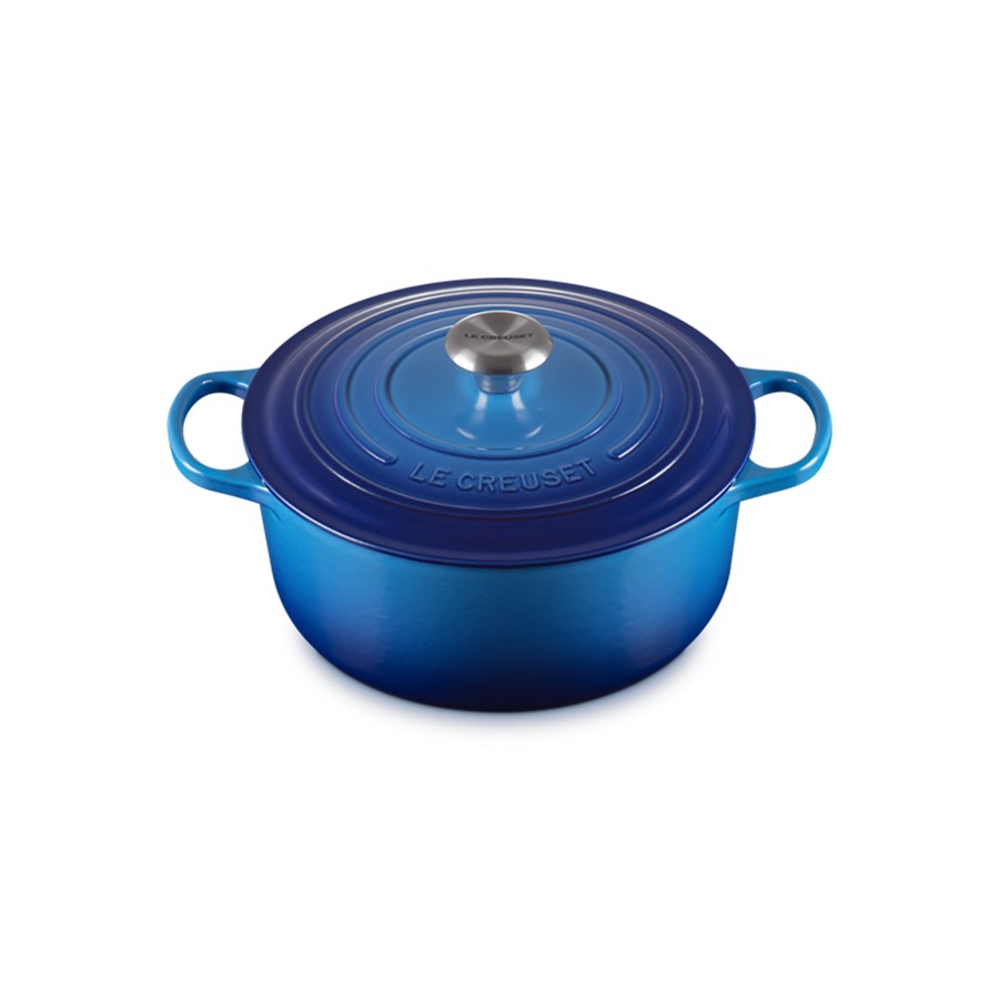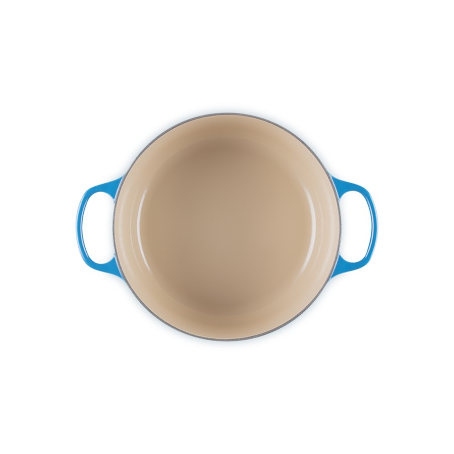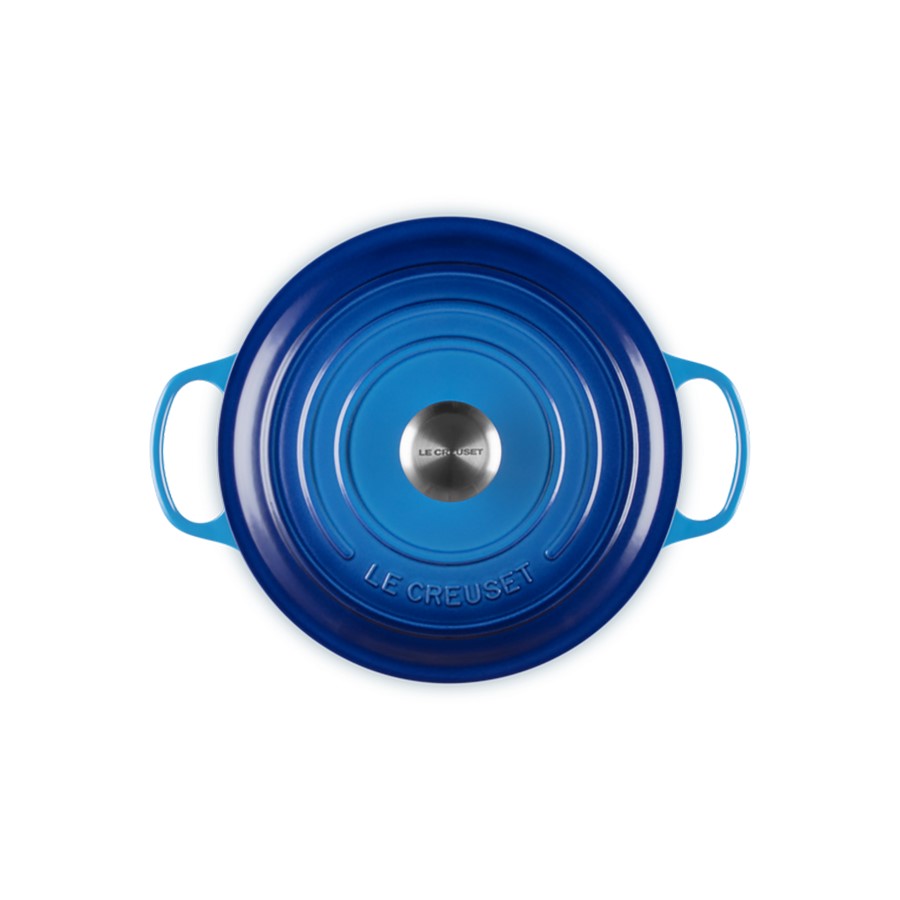 The Le Creuset Round Casserole in Azure Blue, 26 cm, combines robust craftsmanship with stylish elegance. Made from durable cast iron, it ensures excellent heat distribution and retention, ideal for slow-cooking, baking, and braising. The Azure Blue color adds a vibrant and refreshing touch to any kitchen, complementing Le Creuset's renowned enamel finish. Perfectly sized for larger meals or gatherings, this casserole dish merges practical functionality with aesthetic appeal, making it an essential choice for chefs and home cooks who value premium-quality cookware that enhances both cooking performance and kitchen decor.