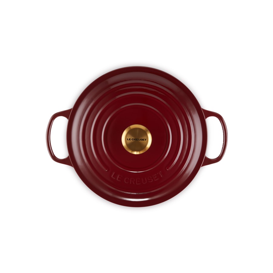 The Le Creuset Round Casserole in Rhone, 26 cm, exemplifies premium craftsmanship and sophisticated design. Made from durable cast iron, it ensures superior heat distribution and retention, perfect for slow-cooking, baking, and braising. The Rhone color, with its rich, earthy tone, adds an elegant touch to any kitchen, complemented by Le Creuset's renowned enamel finish. Ideally sized for larger meals or gatherings, this casserole dish blends practical functionality with aesthetic appeal, making it a valuable addition for chefs and home cooks who appreciate high-quality cookware that enhances both culinary performance and kitchen decor.