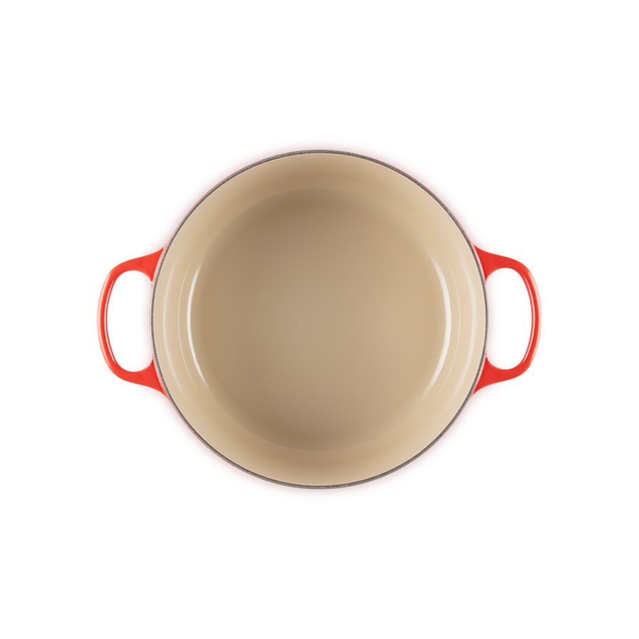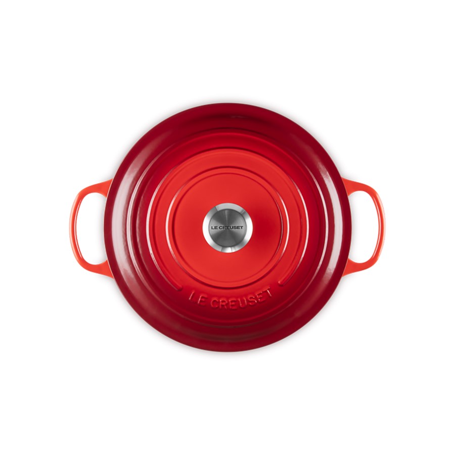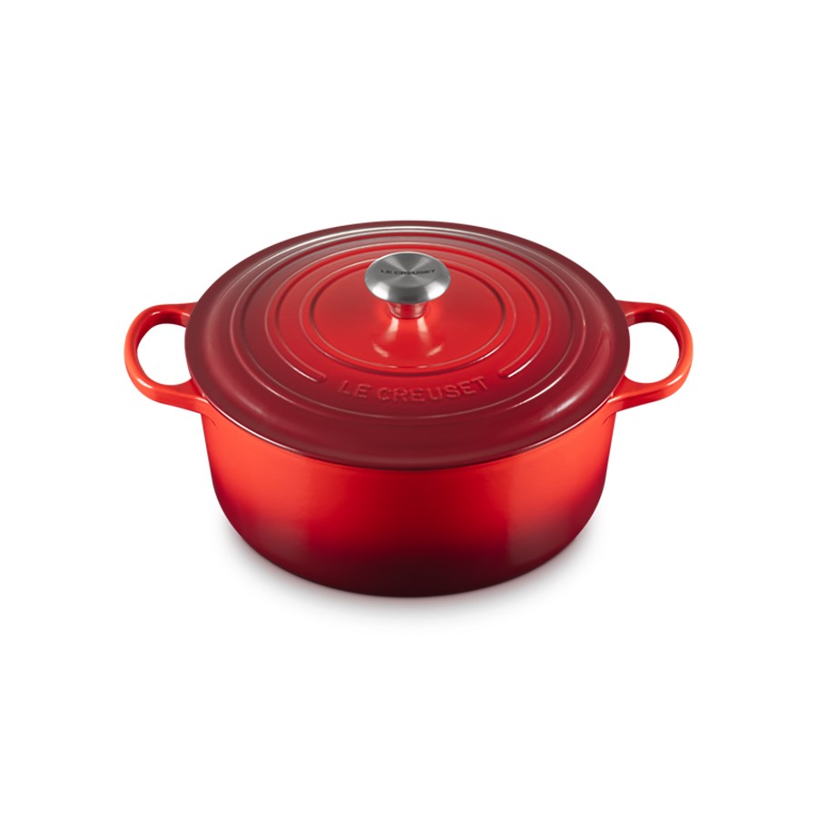 The Le Creuset Round Casserole in Cerise, 28 cm, combines sturdy craftsmanship with vibrant style. Crafted from durable cast iron, it ensures superior heat distribution and retention, making it perfect for slow-cooking, baking, and braising. The Cerise color adds a bold and distinctive touch to any kitchen, complemented by Le Creuset's renowned enamel finish. Sized ideally for larger meals or gatherings, this casserole dish merges practical functionality with aesthetic appeal, making it an essential piece for chefs and home cooks who value high-quality cookware that enhances both cooking performance and kitchen decor.