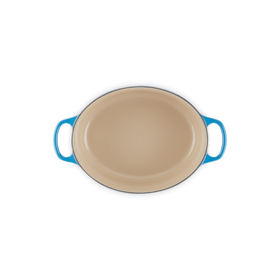 The Le Creuset Oval Casserole in Azure Blue, 27 cm, combines sturdy craftsmanship with a refreshing hue. Crafted from durable cast iron, it ensures excellent heat distribution and retention, ideal for slow-cooking, baking, and braising. The Azure Blue color adds a vibrant and stylish touch to any kitchen, complemented by Le Creuset's renowned enamel finish. Perfectly sized for family meals or gatherings, this oval casserole dish blends practical functionality with aesthetic appeal, making it an essential addition for chefs and home cooks who appreciate high-quality cookware that enhances both cooking performance and kitchen decor.