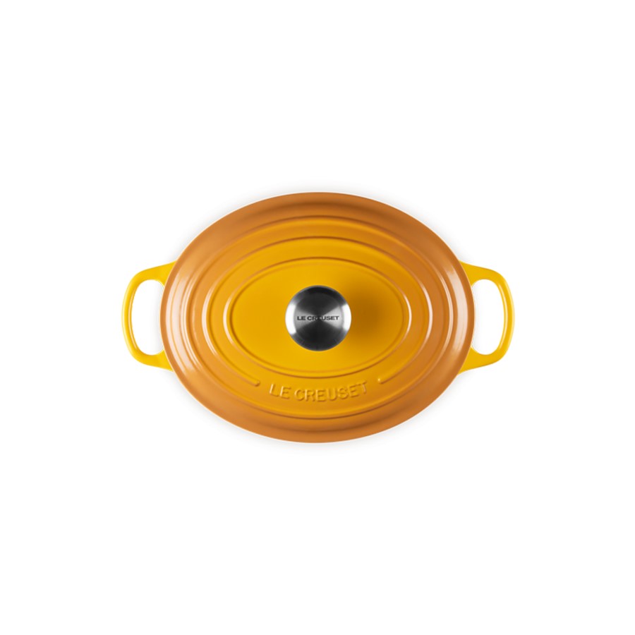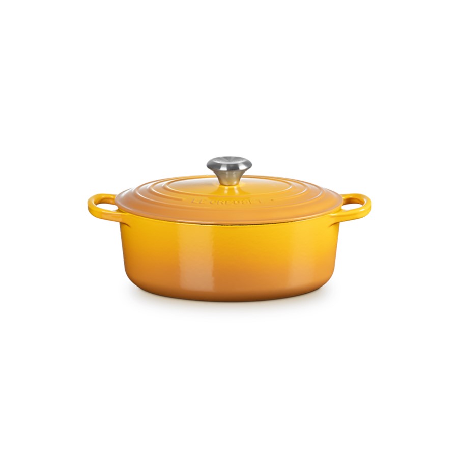 The Le Creuset Oval Casserole in Nectar, 27 cm, combines robust construction with a vibrant aesthetic. Crafted from durable cast iron, it ensures excellent heat distribution and retention, ideal for slow-cooking, baking, and braising. The Nectar color adds a cheerful and warm touch to any kitchen, complemented by Le Creuset's renowned enamel finish. Perfectly sized for family meals or gatherings, this oval casserole dish merges practicality with aesthetic appeal, making it an essential choice for chefs and home cooks who appreciate high-quality cookware that enhances both cooking performance and kitchen decor.