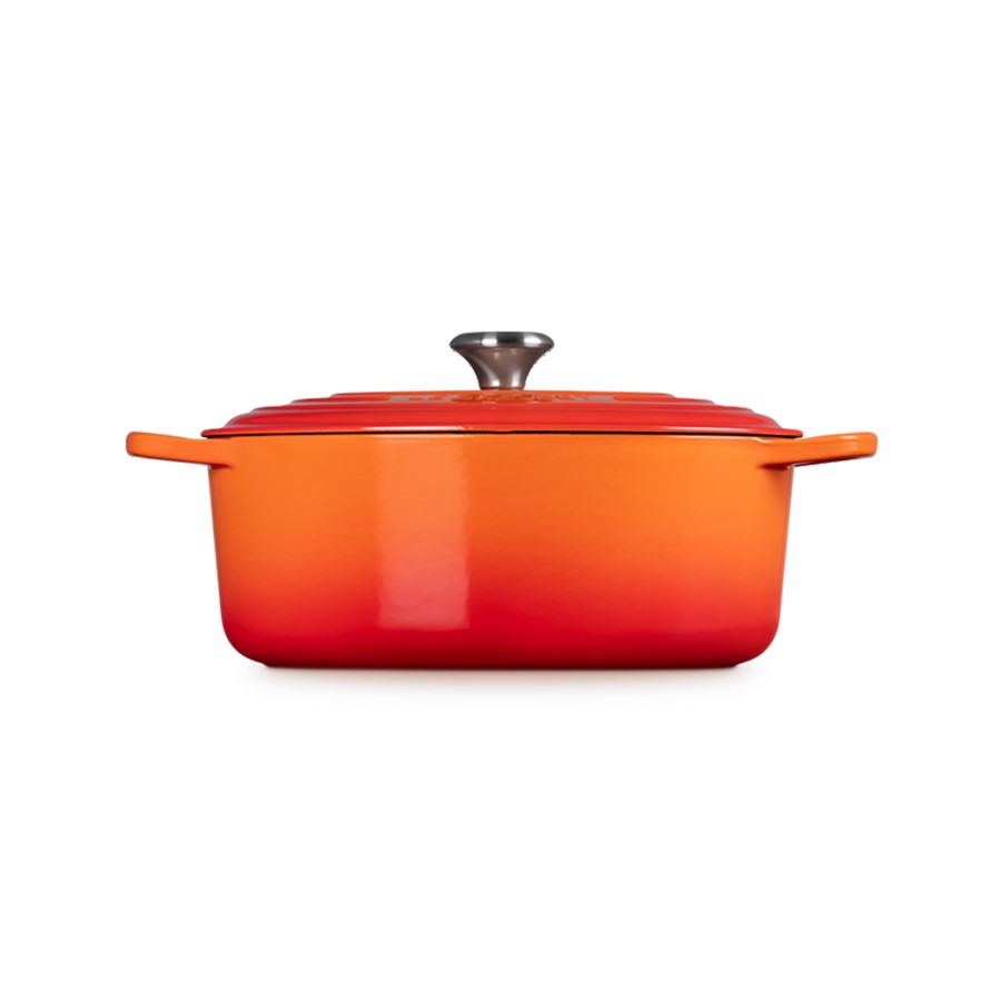 The Le Creuset Oval Casserole in Flame, 29 cm, blends robust craftsmanship with a vibrant, fiery hue. Crafted from durable cast iron, it ensures excellent heat distribution and retention, perfect for slow-cooking, baking, and braising. The iconic Flame color adds a bold and energetic touch to any kitchen, complemented by Le Creuset's renowned enamel finish. Perfectly sized for family meals or gatherings, this oval casserole dish merges practical functionality with aesthetic appeal, making it an essential piece for chefs and home cooks who value high-quality cookware that enhances both cooking performance and kitchen decor.