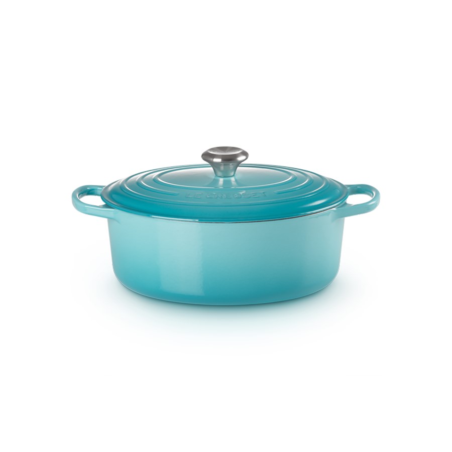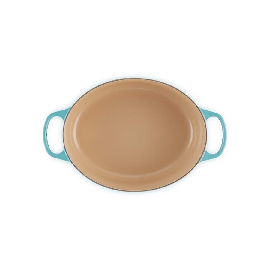The Le Creuset Oval Casserole in Teal, 29 cm, combines robust craftsmanship with a refreshing, stylish hue. Made from durable cast iron, it ensures superior heat distribution and retention, ideal for slow-cooking, baking, and braising. The Teal color adds a vibrant and modern touch to any kitchen, complemented by Le Creuset's renowned enamel finish. Perfectly sized for family meals or gatherings, this oval casserole dish seamlessly merges practical functionality with aesthetic appeal, making it an essential choice for chefs and home cooks who appreciate premium-quality cookware that enhances both cooking performance and kitchen decor.
