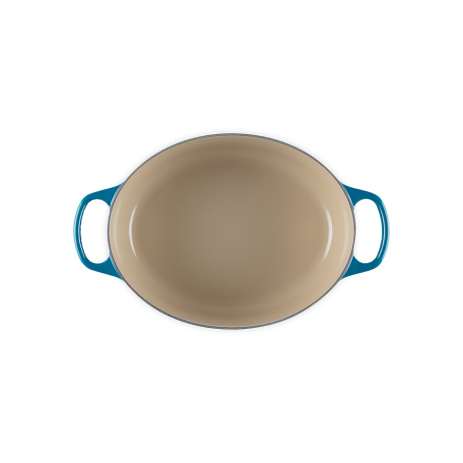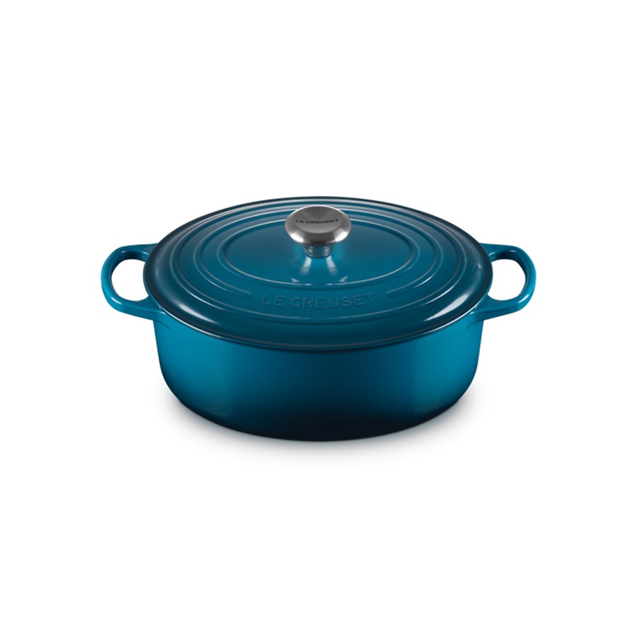 The Le Creuset Oval Casserole in Deep Teal, 29 cm, combines robust craftsmanship with a rich, sophisticated hue. Crafted from durable cast iron, it ensures excellent heat distribution and retention, making it perfect for slow-cooking, baking, and braising. The Deep Teal color adds a luxurious and stylish touch to any kitchen, complemented by Le Creuset's renowned enamel finish. Perfectly sized for family meals or gatherings, this oval casserole dish merges practical functionality with aesthetic appeal, making it an essential piece for chefs and home cooks who value high-quality cookware that enhances both cooking performance and kitchen decor.