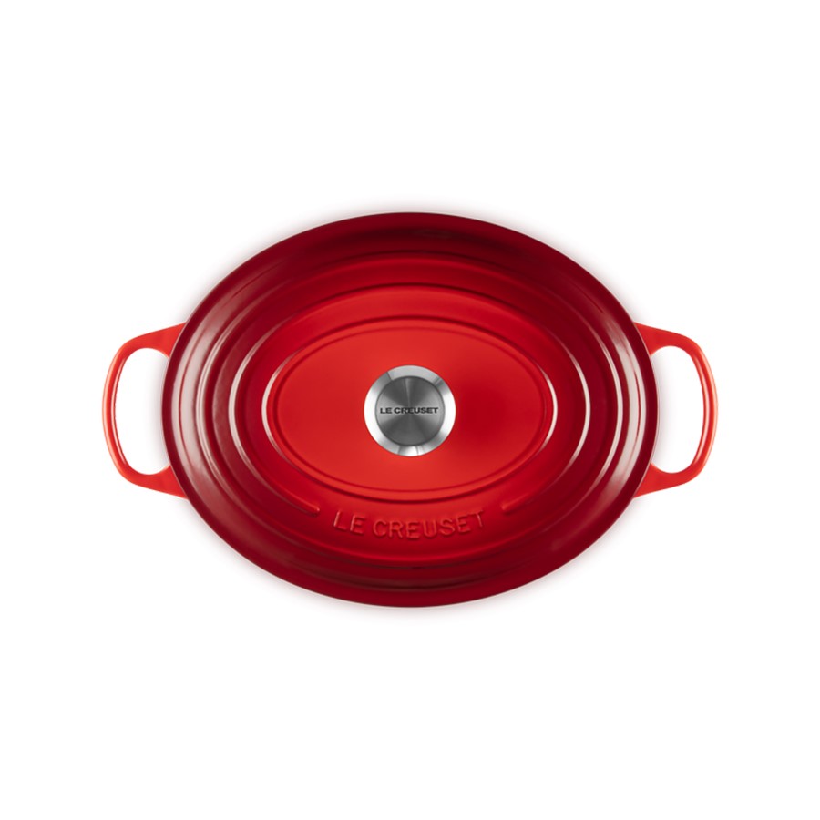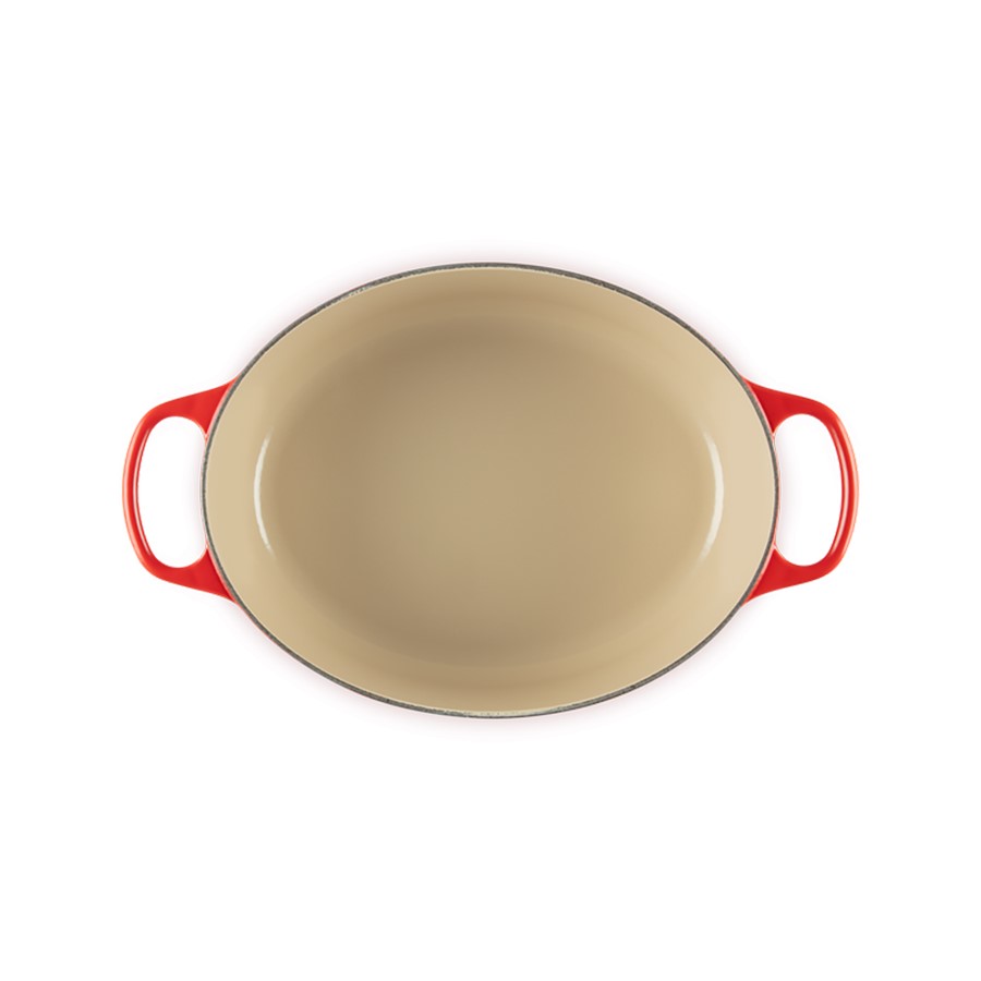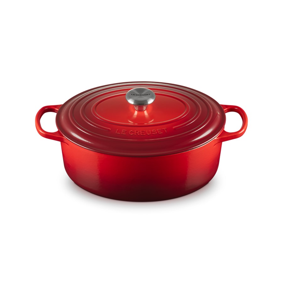 The Le Creuset Oval Casserole in Cerise, 31 cm, combines exceptional craftsmanship with a vibrant, eye-catching hue. Made from durable cast iron, it provides excellent heat distribution and retention, making it ideal for slow-cooking, baking, and braising. The Cerise color adds a bold and lively touch to any kitchen, beautifully complemented by Le Creuset's renowned enamel finish. Perfectly sized for family meals or gatherings, this oval casserole dish blends practicality with aesthetic appeal, making it an essential choice for chefs and home cooks who appreciate high-quality cookware that enhances both cooking performance and kitchen decor.