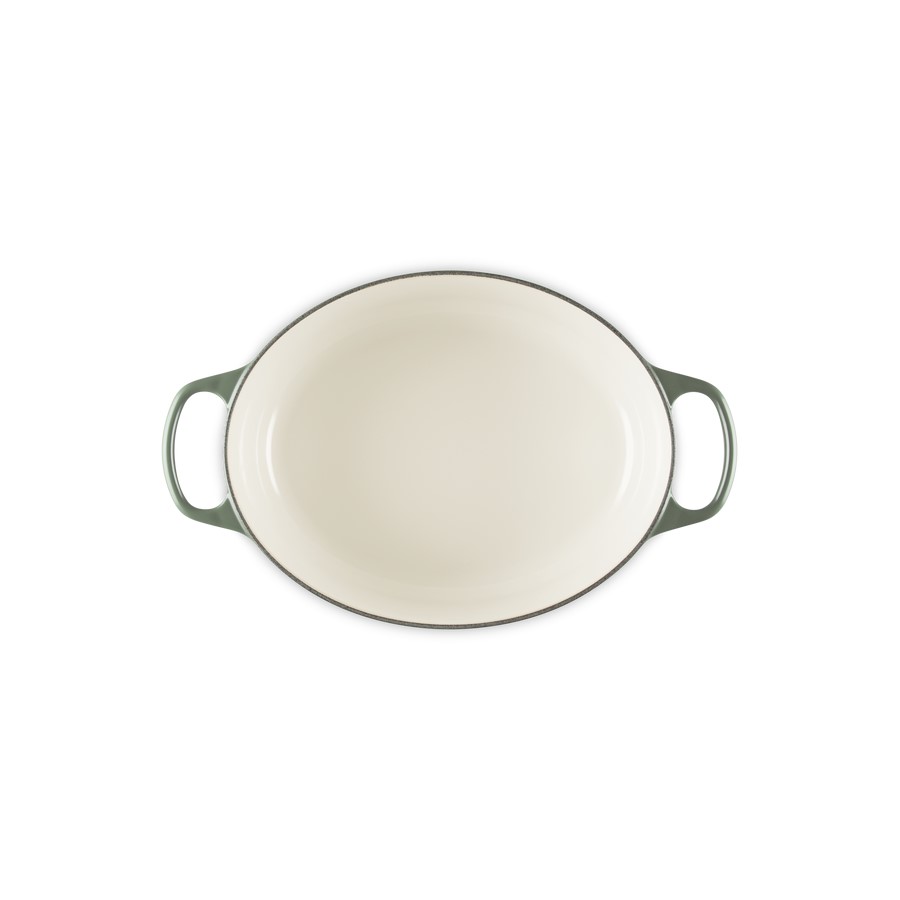 The Le Creuset Oval Casserole in Thyme, 31 cm, blends exceptional craftsmanship with a stunning, vibrant hue. Made from durable cast iron, it offers superior heat distribution and retention, making it ideal for slow-cooking, baking, and braising. The Thyme color adds a refreshing touch to any kitchen, complemented by Le Creuset's signature enamel finish. Perfectly sized for family gatherings or entertaining, this oval casserole dish harmonizes practical functionality with visual appeal, making it an essential choice for chefs and home cooks who appreciate high-quality cookware that enhances both cooking performance and kitchen decor.