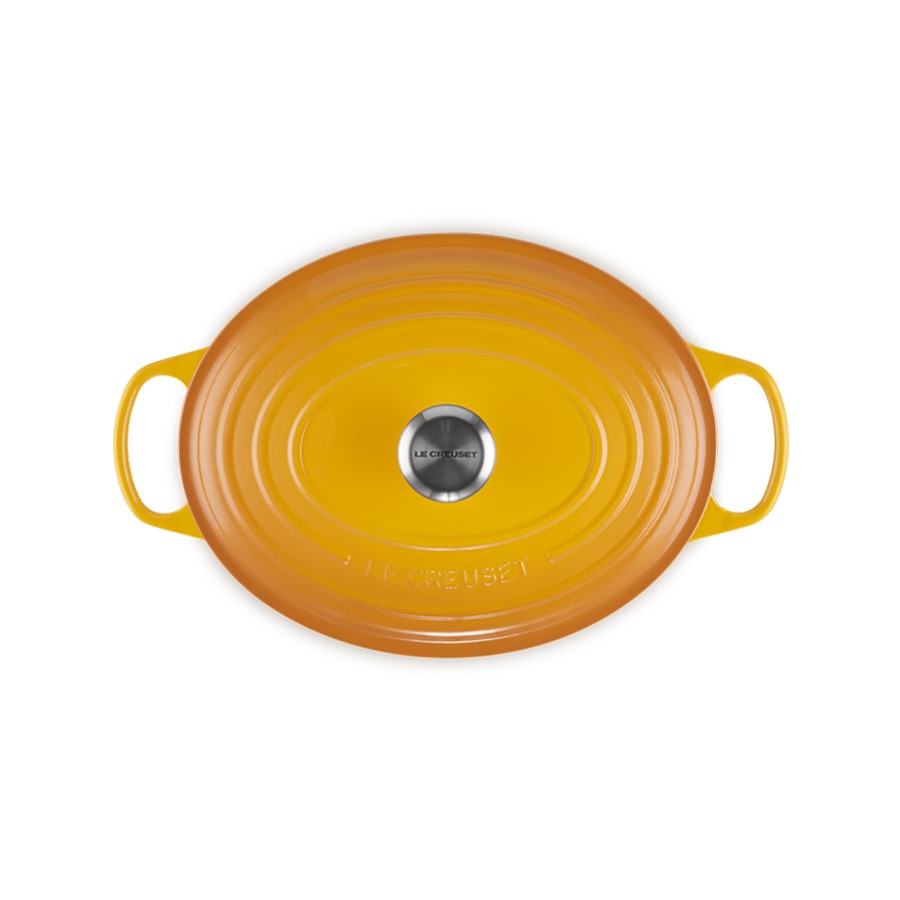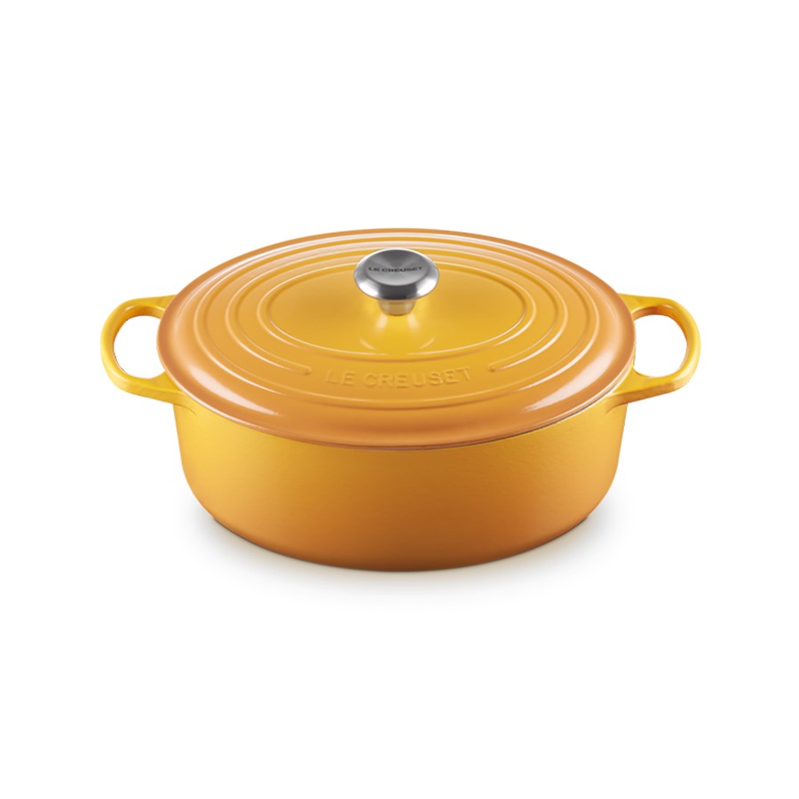 The Le Creuset Oval Casserole in Nectar, 31 cm, beautifully combines exceptional craftsmanship with a warm, inviting hue. Made from durable cast iron, it offers superior heat distribution and retention, making it ideal for slow-cooking, baking, and braising. The Nectar color adds a cheerful and vibrant touch to any kitchen, complemented by Le Creuset's renowned enamel finish. Perfectly sized for family gatherings or entertaining, this oval casserole dish merges practical functionality with visual appeal, making it an essential piece for chefs and home cooks who value high-quality cookware that enhances both cooking performance and kitchen decor.