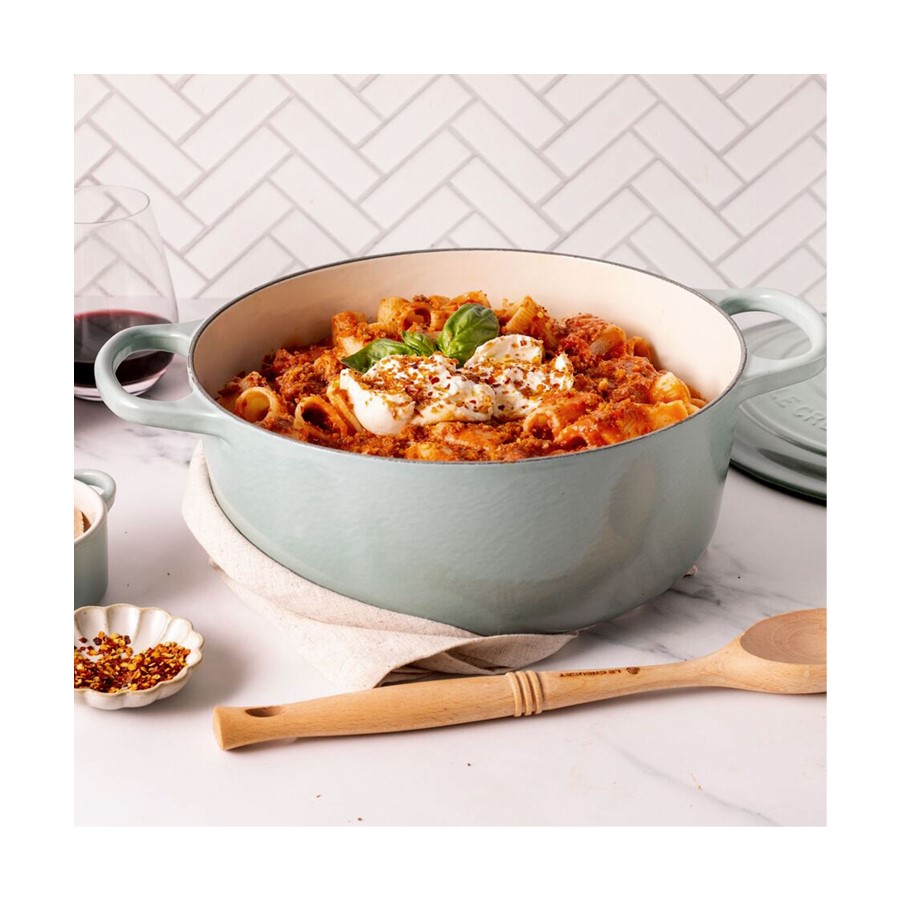 The Le Creuset Oval Casserole in Sea Salt, 31 cm, combines exceptional craftsmanship with a rich, earthy hue. Made from durable cast iron, it ensures excellent heat distribution and retention, making it ideal for slow-cooking, baking, and braising. The Rhone color adds a sophisticated touch to any kitchen, beautifully complemented by Le Creuset's renowned enamel finish. Perfectly sized for family meals or gatherings, this oval casserole dish merges practical functionality with aesthetic appeal, making it an essential choice for chefs and home cooks who value high-quality cookware that enhances both cooking performance and kitchen decor.