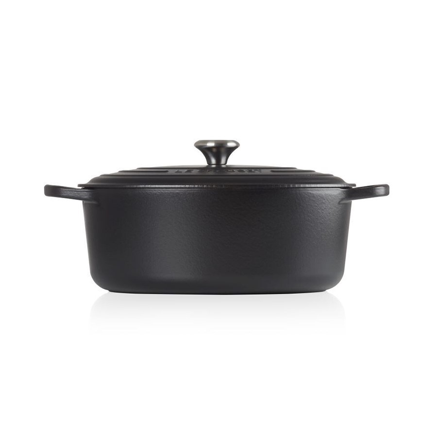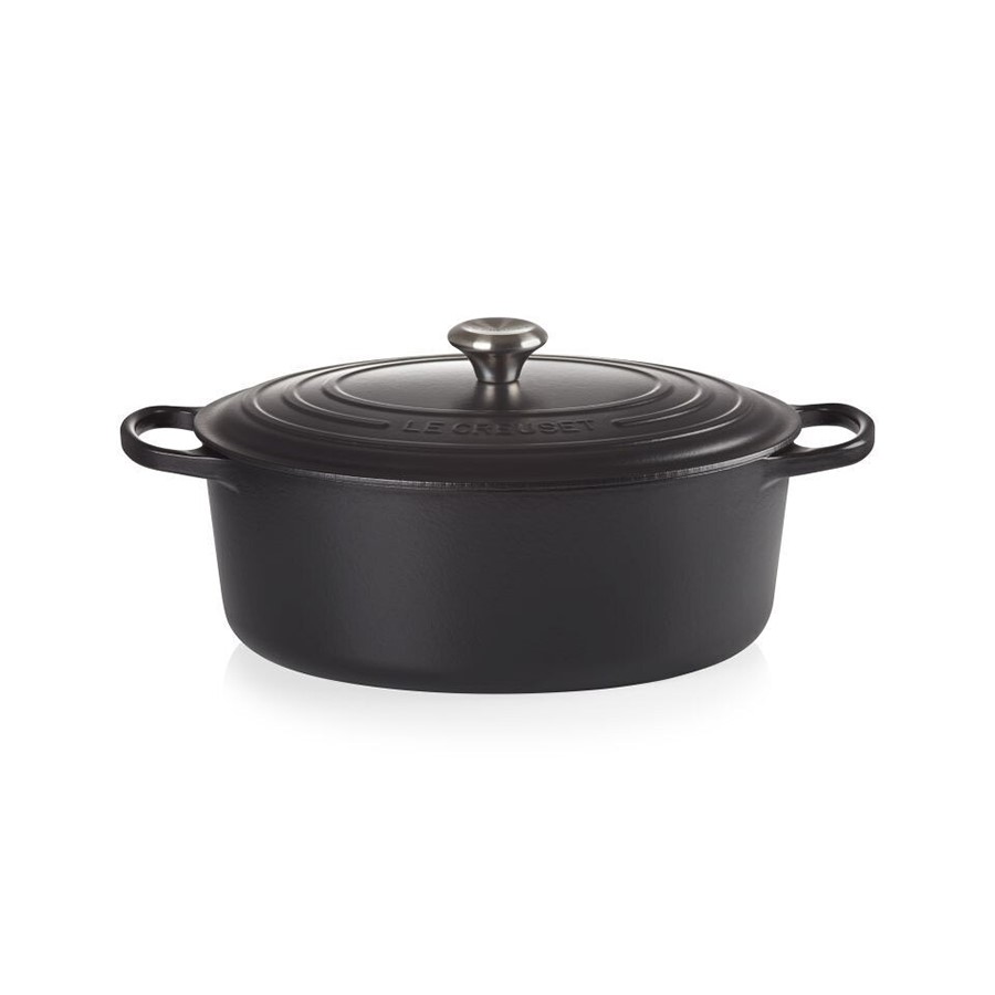 The Le Creuset Oval Casserole in Satin Black, 35 cm, combines exceptional craftsmanship with a sleek, modern design. Made from durable cast iron, it provides superior heat distribution and retention, perfect for slow-cooking, baking, and braising. The Satin Black finish adds a sophisticated and versatile touch to any kitchen, complemented by Le Creuset's renowned enamel coating. Ideal for large family meals or entertaining, this oval casserole dish seamlessly merges practicality with style, making it an essential choice for chefs and home cooks who appreciate high-quality cookware that enhances both cooking performance and kitchen decor.