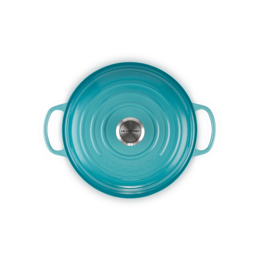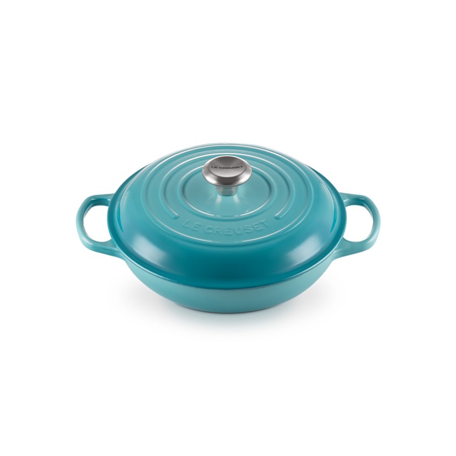 The Le Creuset Signature Round Braiser in Teal, 26 cm, combines exceptional craftsmanship with a stunning, modern hue. Made from durable cast iron, it ensures superior heat distribution and retention, perfect for braising, sautéing, and shallow frying. The Teal color adds a fresh and stylish touch to any kitchen, beautifully complemented by Le Creuset's renowned enamel finish. The included lid enhances versatility, allowing for moisture retention and even cooking. Ideal for preparing a variety of dishes, this round braiser merges practical functionality with aesthetic appeal, making it an essential choice for chefs and home cooks who appreciate high-quality cookware that elevates both cooking performance and kitchen decor.