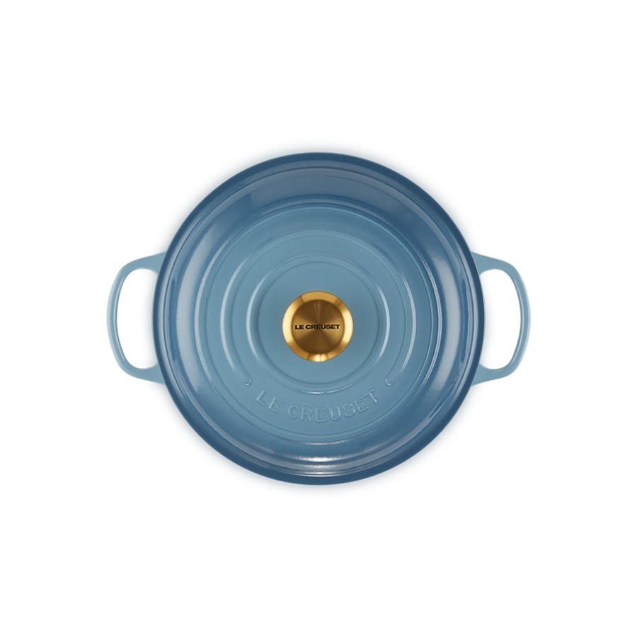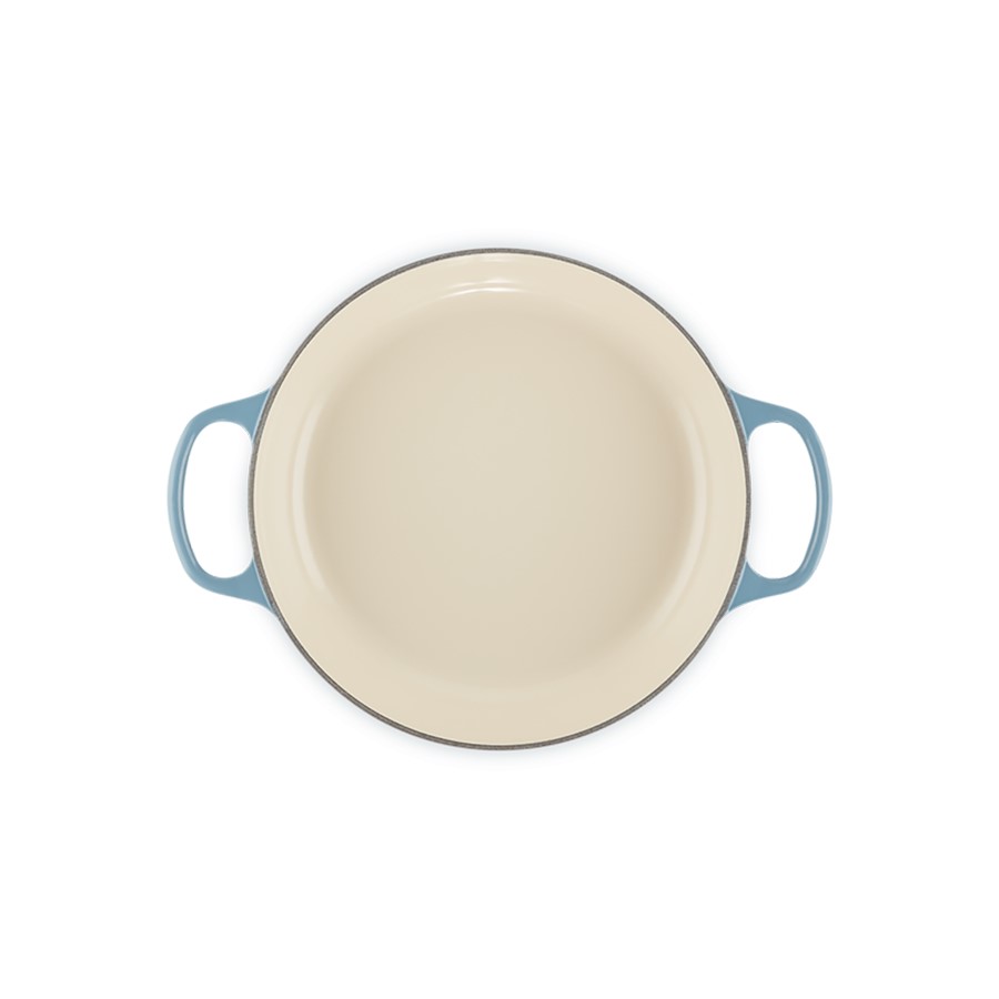 The Le Creuset Shallow Casserole/Braiser in Chambray, 26 cm, combines exceptional craftsmanship with a stylish, denim-inspired hue. Crafted from durable cast iron, it ensures superior heat distribution and retention, ideal for braising, sautéing, and shallow frying. The Chambray color adds a sophisticated and modern touch to any kitchen, complemented by Le Creuset's renowned enamel finish. Perfect for preparing various dishes, this shallow casserole dish seamlessly blends practicality with aesthetic appeal, making it a must-have for chefs and home cooks who appreciate high-quality cookware that enhances both cooking performance and kitchen decor.