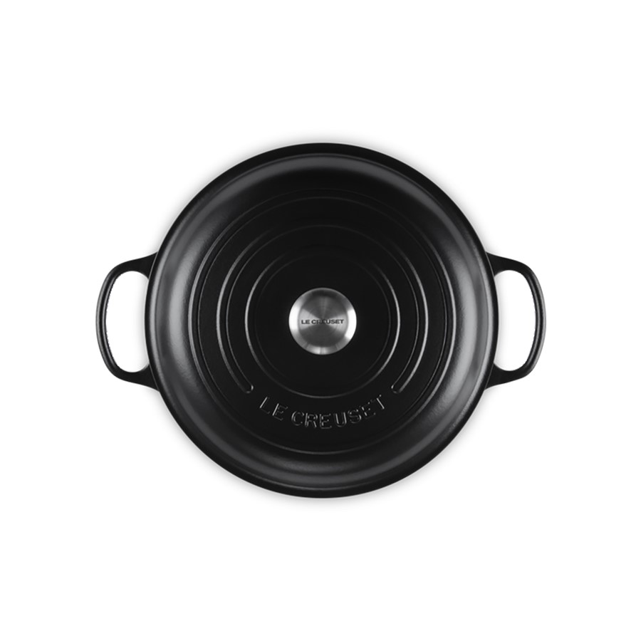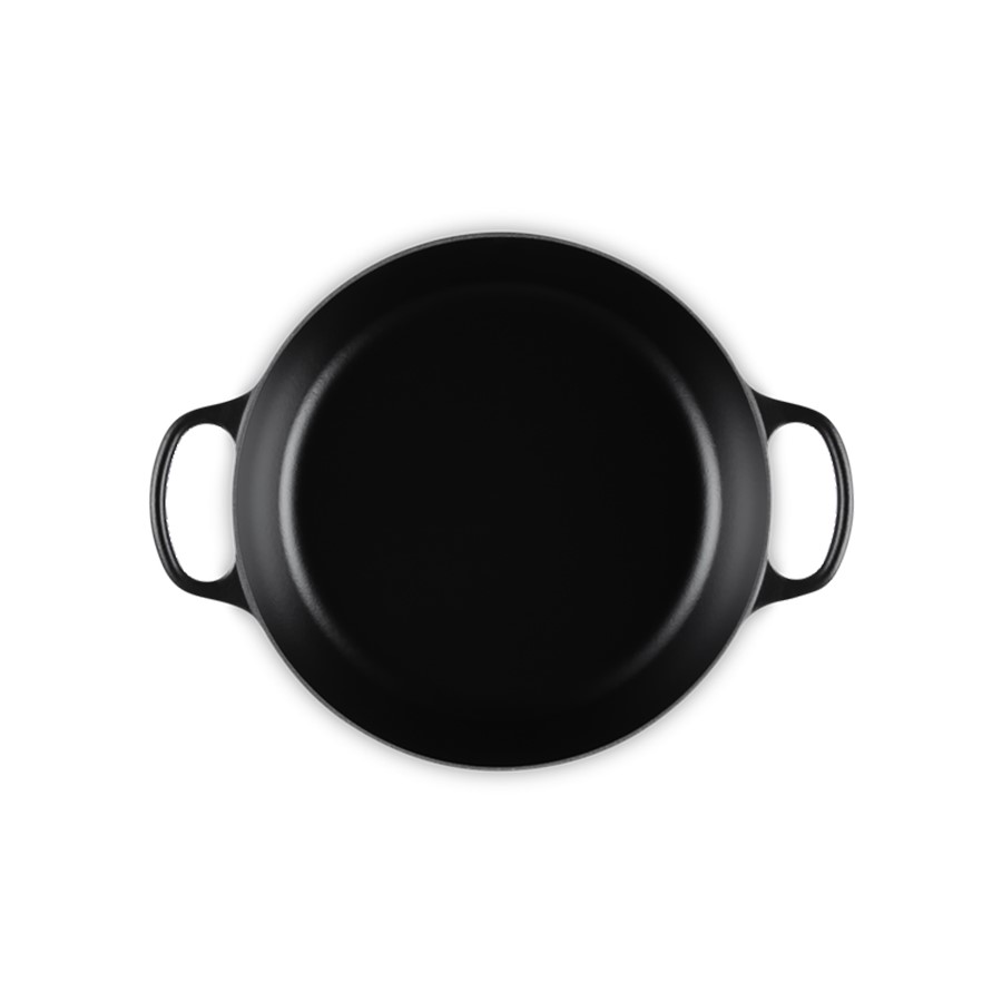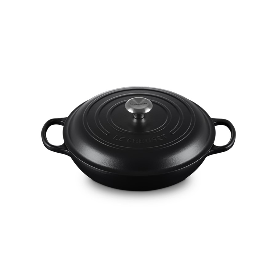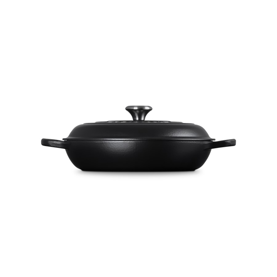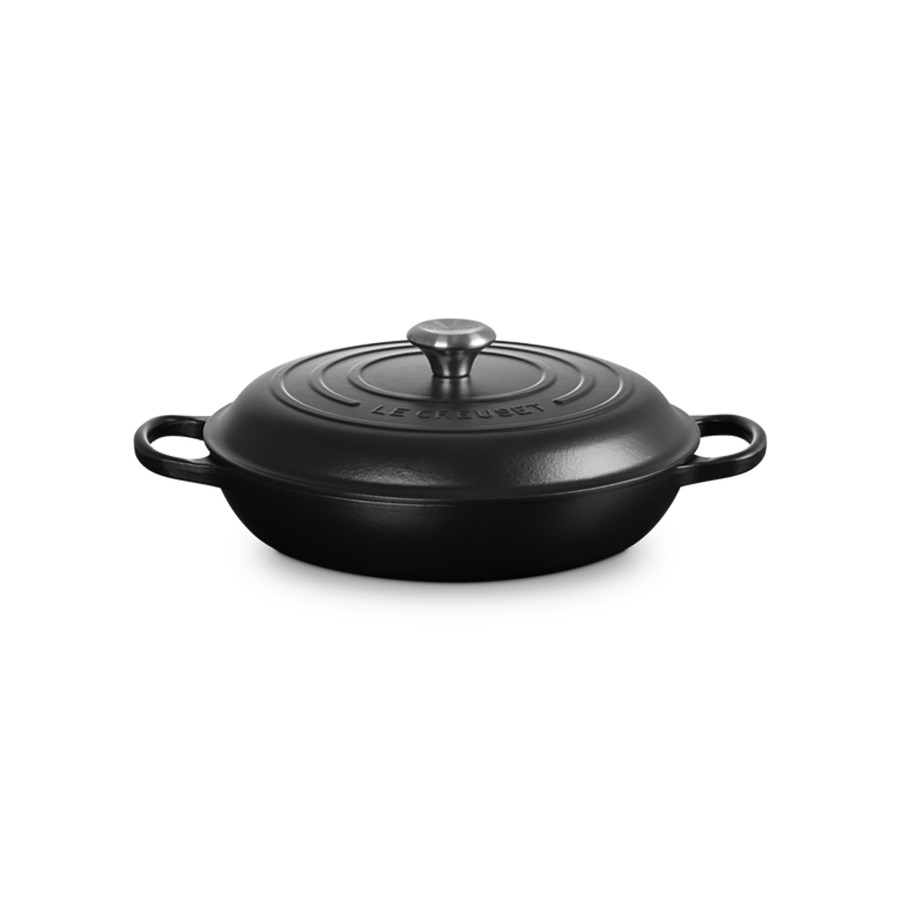The Le Creuset Signature Round Braiser in Matte Black, 30 cm, epitomizes superior craftsmanship and timeless elegance. Crafted from durable cast iron, it guarantees excellent heat distribution and retention, ideal for braising, roasting, and simmering. The Matte Black color lends a sleek and sophisticated touch to any kitchen, complemented by Le Creuset's renowned enamel finish. With its versatile lidded design, this braiser ensures even cooking and moisture retention, perfect for a wide range of dishes from stews to casseroles. Whether for everyday cooking or special occasions, this braiser from Le Creuset's Signature collection combines functionality with aesthetic appeal, making it an indispensable piece for chefs and home cooks alike.