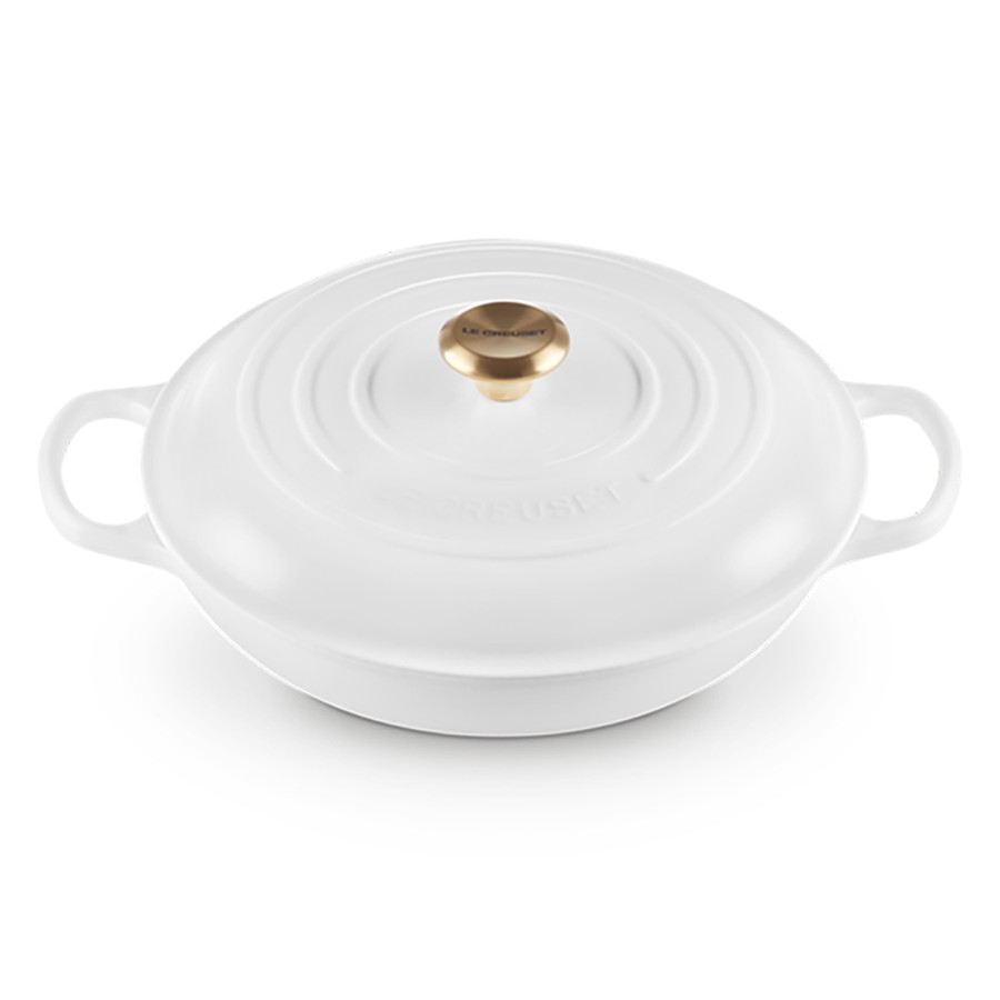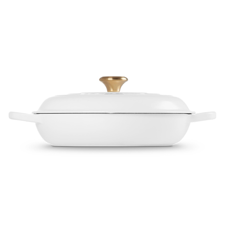The Le Creuset Cast Iron Signature Shallow Casserole delivers elegant, efficient cooking in one versatile piece. Its wide base allows searing without crowding while the enameled cast iron retains heat for even slow-cooking. Designed for use on all hobs including induction and safe in the oven up to 260 °C, it includes a tight-fitting lid to lock in moisture and large side handles for easy transfer from stove to table. The smooth enamel interior speeds up cleaning and the lifetime warranty adds peace of mind.