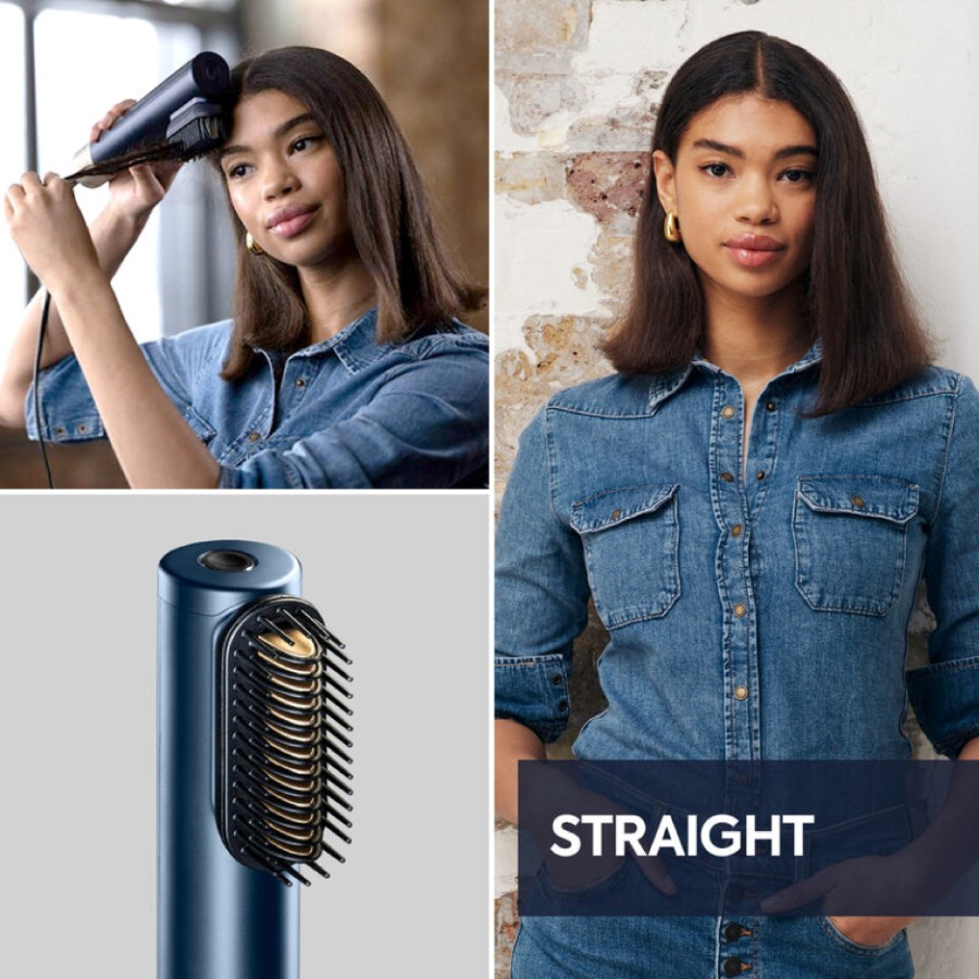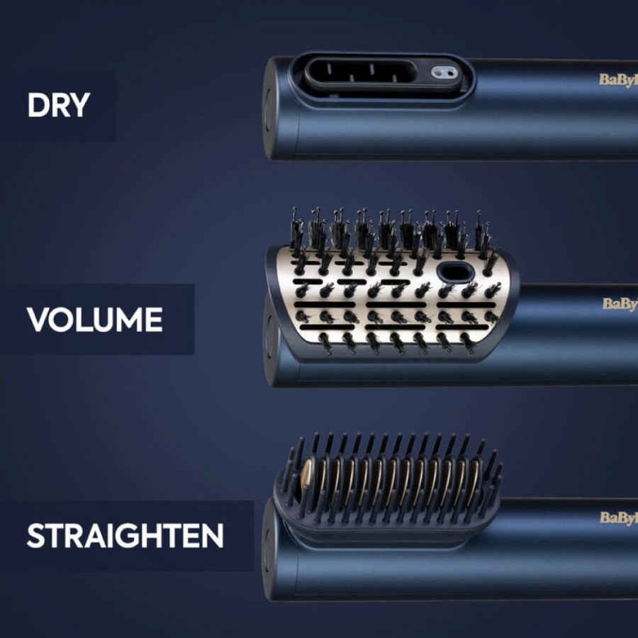 The BaByliss Air Wand combines drying, straightening, and volumizing in one powerful tool. With 1600W of power and an ultra-fast 123km/h airflow, it delivers salon-quality results from wet to dry—without heat damage. Precision ceramic plates smooth and straighten from the root as you dry, while the curved oval brush adds volume and shine for a flawless blow-dry finish. Fast, effortless styling made easy.