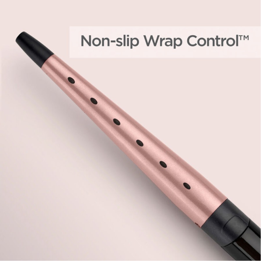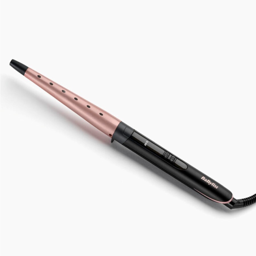 The BaByliss Rose Quartz Conical Wand is a high-performance curling tool designed to create beautiful, defined curls. It features 6 adjustable heat settings ranging from 160°C to 210°C, allowing you to choose the perfect temperature for your hair type. The wand heats up quickly, with a digital display for precise temperature control. It comes with a heat-resistant mat and protective glove for safe styling. The 13-25mm barrel is coated with advanced quartz ceramic, delivering smooth, shiny results with every use.