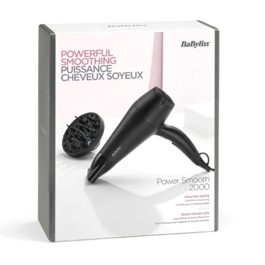Experience professional-quality drying with the Babyliss 2000W Hair Dryer in sleek black. Designed for efficiency and ease, it features 2 temperature and 2 speed settings, ceramic technology for even heat distribution, and essential styling attachments including a concentrator nozzle and soft spike diffuser. The removable filter ensures easy maintenance, while the 1.8m power cord provides flexible styling. Powered by an electric cable, it's a reliable choice for everyday hair care.