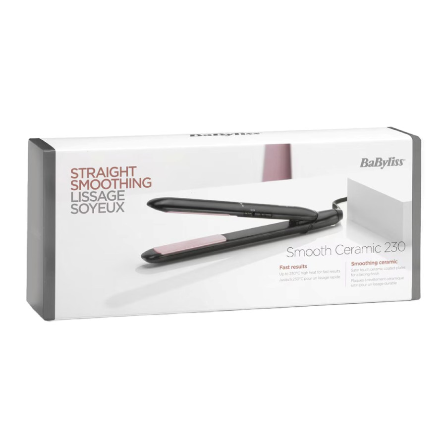Get smooth, sleek styles anytime with the BaByliss Hair Smooth Ceramic 230. Featuring ceramic-coated plates, 6 digital heat settings (up to 450°F), and a 60-second heat-up time, it's perfect for fast, effortless styling. Compact and multi-voltage—ideal for travel.