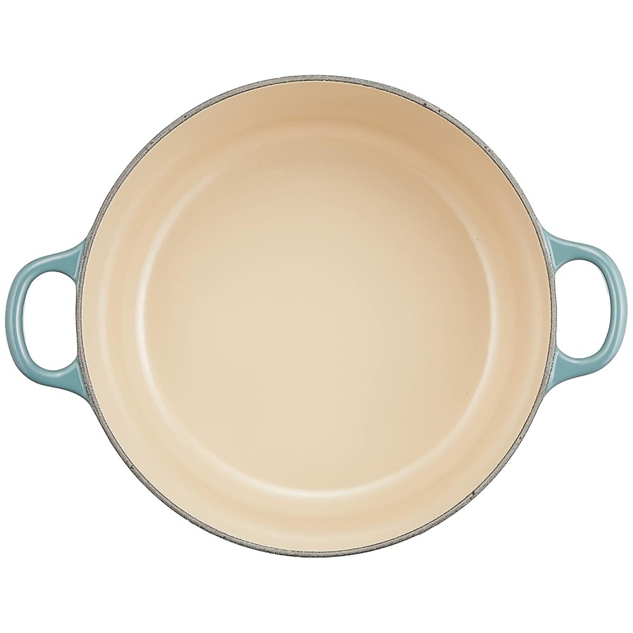 The Le Creuset 24 cm Classic Round Casserole, showcases exceptional craftsmanship and a timeless design. Made from durable cast iron, this casserole ensures superior heat distribution and retention, ideal for slow-cooking, roasting, and baking. The stunning Ocean color adds a refreshing and elegant touch to any kitchen, complemented by Le Creuset's renowned enamel finish. This versatile round casserole dish seamlessly combines practical functionality with aesthetic appeal, making it perfect for everyday meals and special occasions alike. An essential piece for chefs and home cooks who value high-quality cookware that enhances both cooking performance and kitchen decor.