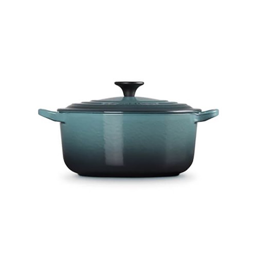 The Le Creuset Classic Round Casserole in Ocean, 26 cm, showcases exceptional craftsmanship and a timeless design. Made from durable cast iron, this casserole ensures superior heat distribution and retention, ideal for slow-cooking, roasting, and baking. The stunning Ocean color adds a refreshing and elegant touch to any kitchen, complemented by Le Creuset's renowned enamel finish. This versatile round casserole dish seamlessly combines practical functionality with aesthetic appeal, making it perfect for everyday meals and special occasions alike. An essential piece for chefs and home cooks who value high-quality cookware that enhances both cooking performance and kitchen decor.