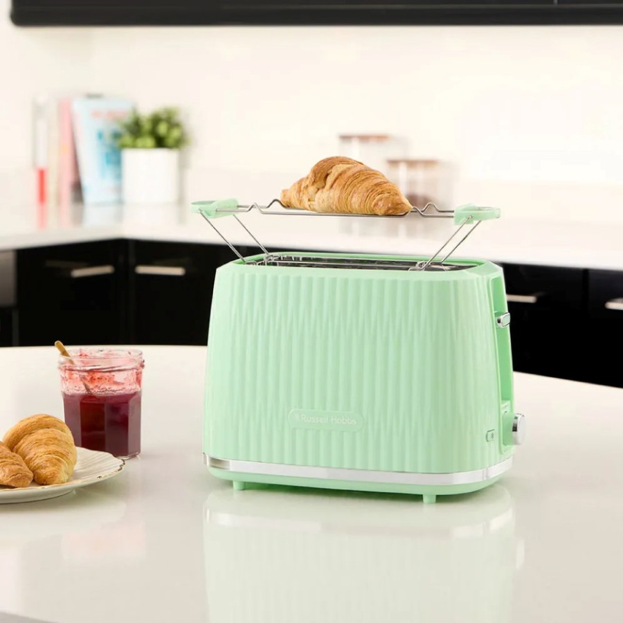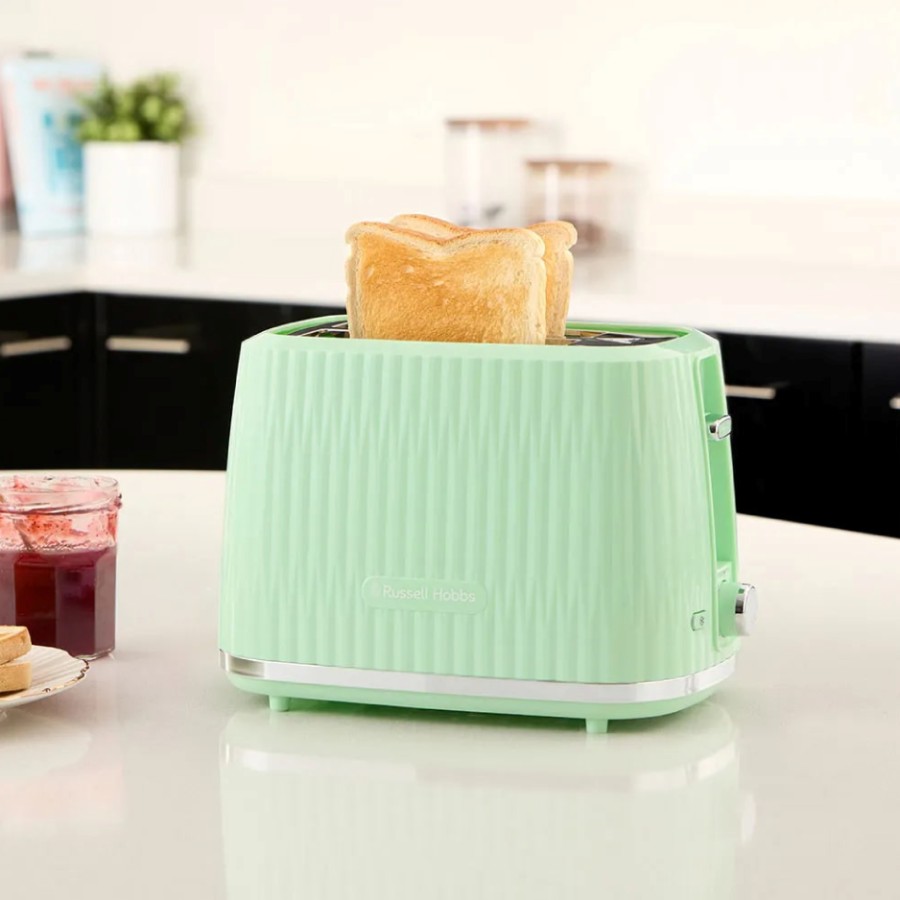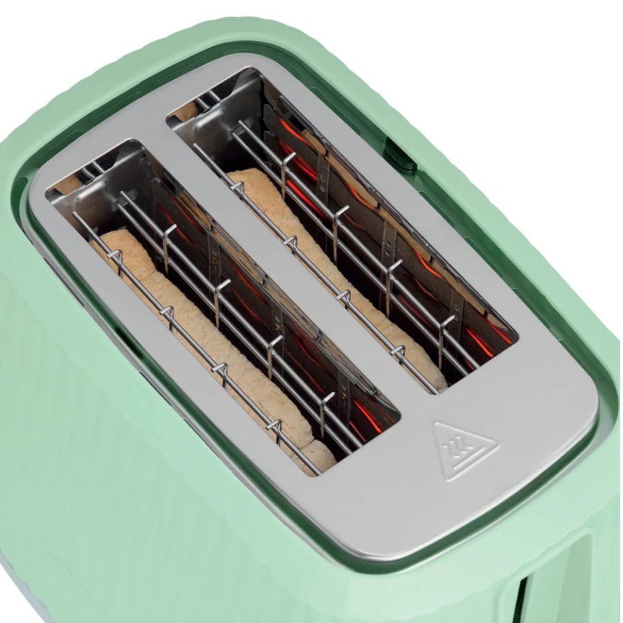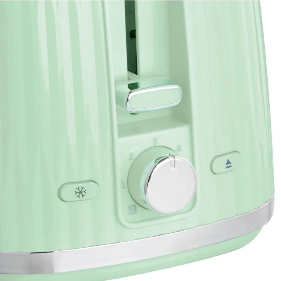 With its sleek textured pistachio design and chrome accents, the Eden Toaster Pistachio brings a fresh pop of color to any kitchen. Enjoy perfectly toasted slices with six browning settings, plus frozen, reheat, and cancel functions for added convenience. The high lift feature makes it easy to retrieve your toast or bagel without hassle.
