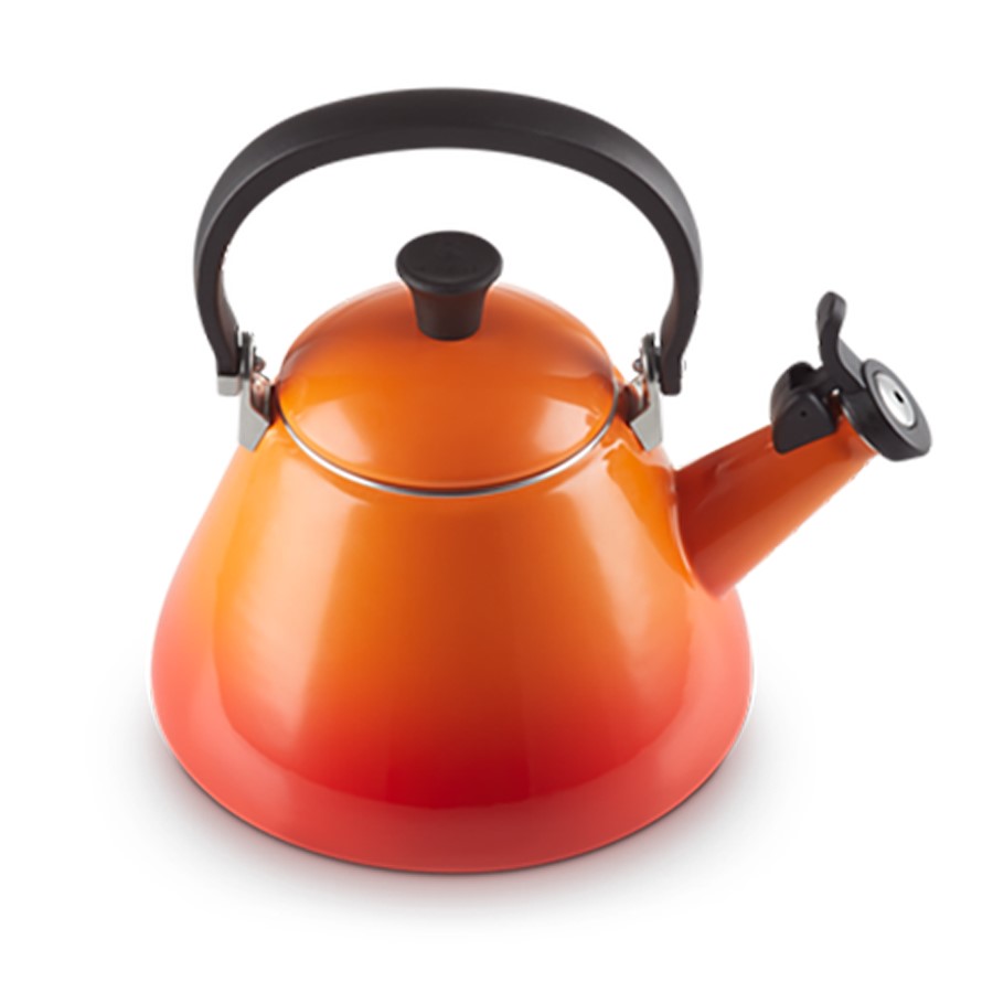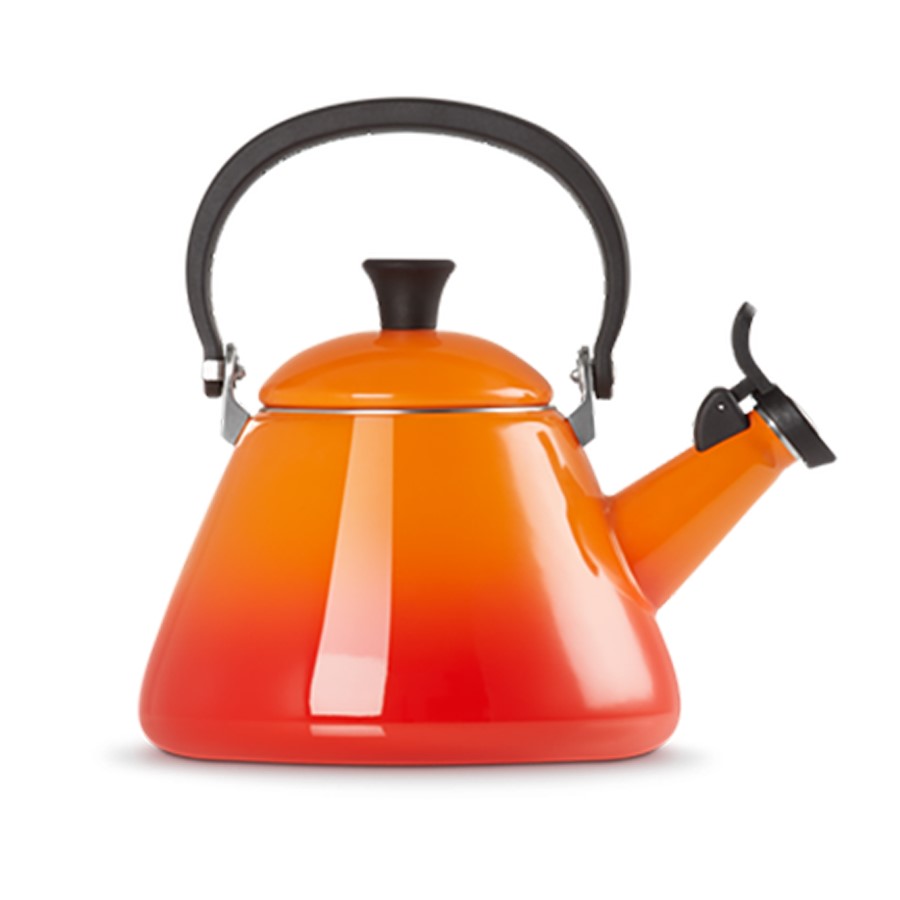 The Le Creuset 1.6L Kone Kettle combines style and functionality in a sleek design. Crafted from premium carbon steel and coated with durable, vibrant enamel, it ensures quick heating and even heat distribution. The fixed whistle alerts when water reaches a boil, while the heat-resistant handle offers safe, comfortable pouring. Suitable for all heat sources, including induction, this kettle adds a touch of elegance to any kitchen. Its compact size is perfect for small spaces, and while dishwasher safe, hand washing is recommended to preserve its finish.