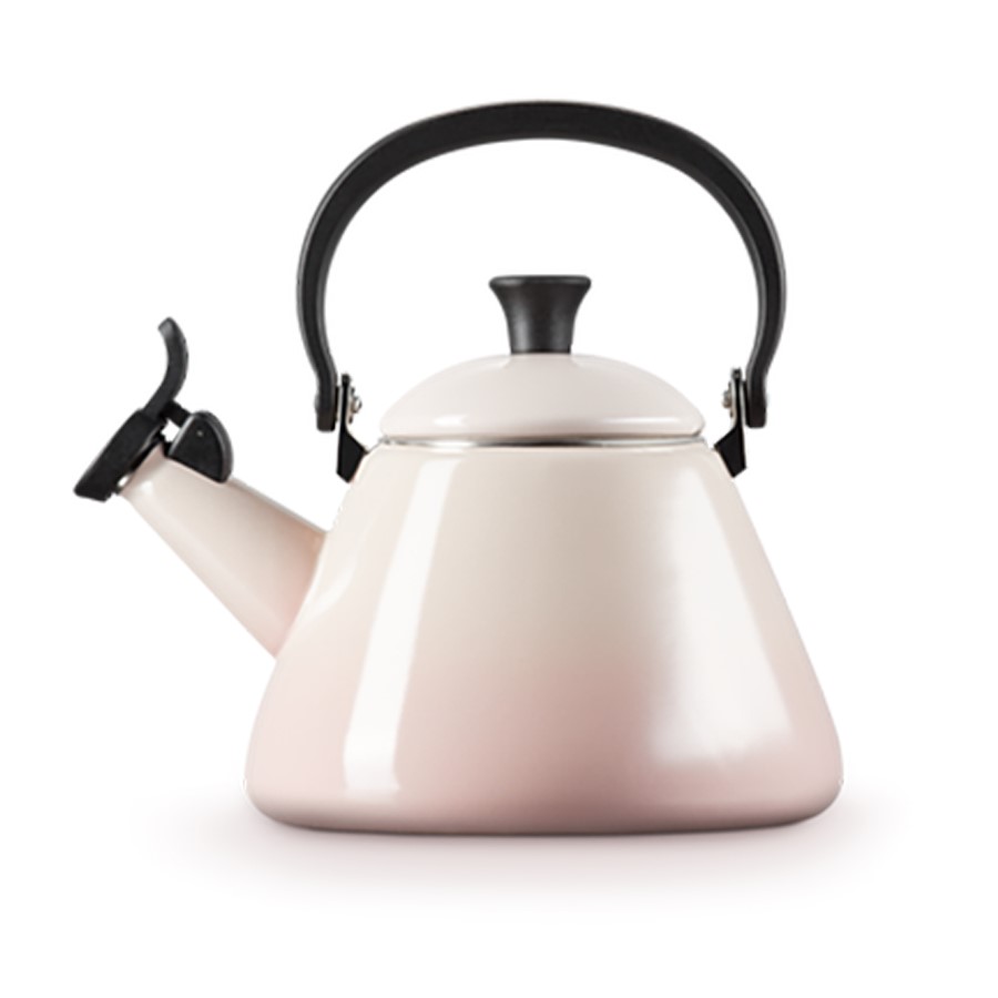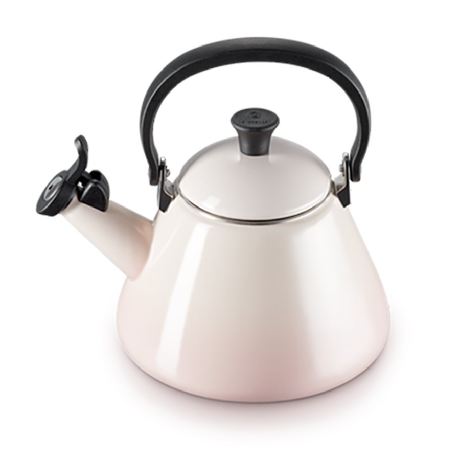 The Le Creuset 1.6L Kone Kettle combines style and functionality in a sleek design. Crafted from premium carbon steel and coated with durable, vibrant enamel, it ensures quick heating and even heat distribution. The fixed whistle alerts when water reaches a boil, while the heat-resistant handle offers safe, comfortable pouring. Suitable for all heat sources, including induction, this kettle adds a touch of elegance to any kitchen. Its compact size is perfect for small spaces, and while dishwasher safe, hand washing is recommended to preserve its finish.