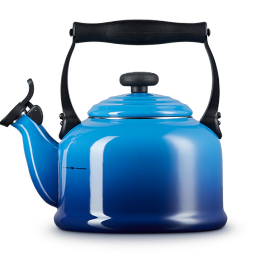 The traditional Le Creuset 2.1L kettle exudes classic charm and functionality. Made from high-quality carbon steel with a vibrant enamel finish, it ensures rapid heating and even heat distribution. Its ergonomic, heat-resistant handle and easy-pour spout provide safe and convenient use. The 2.1L kettle features a fixed whistle to signal boiling water, adding both practicality and a touch of nostalgia. Suitable for all heat sources, including induction, it blends seamlessly into any kitchen decor. While dishwasher safe, hand washing is recommended to maintain its enduring beauty and performance.