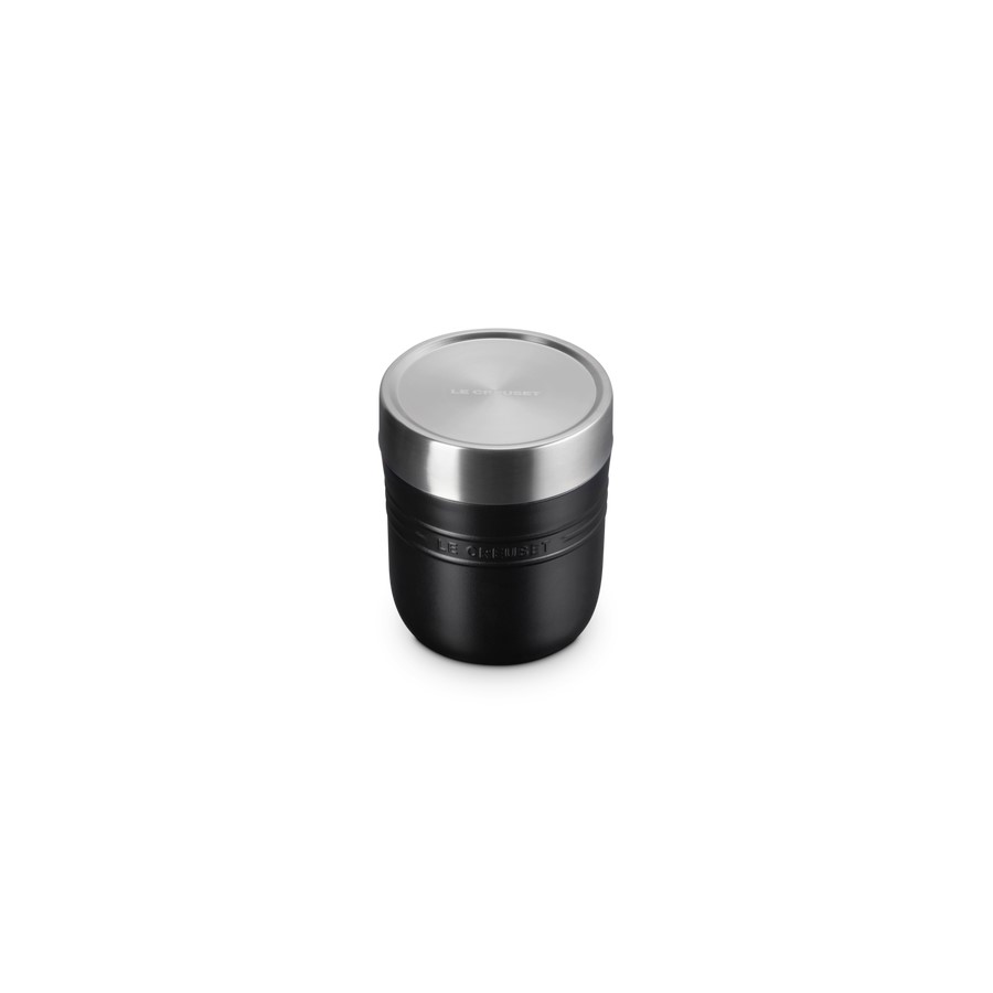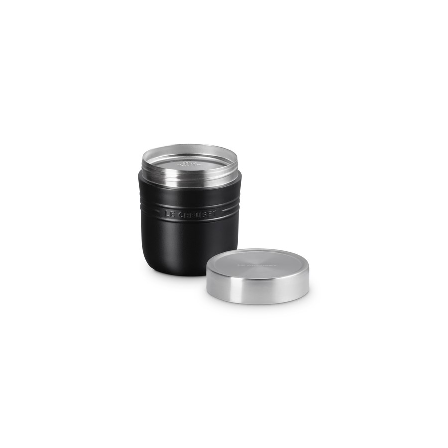 The Le Creuset On The Go Food Flask in Black (500ml) seamlessly combines functionality with elegant design, making it an essential companion for meals away from home. Its double-wall vacuum insulation, enhanced by a copper layer, ensures your food stays hot or cold for extended periods, while the condensation-free exterior keeps your hands dry.