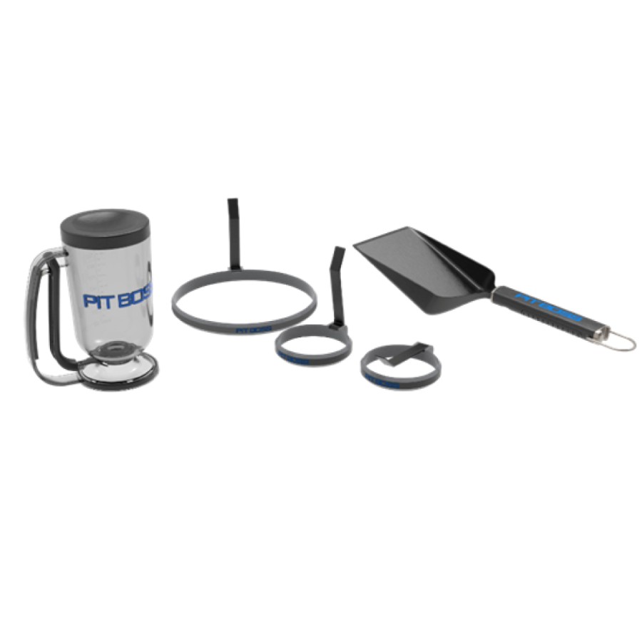 Take breakfast on the griddle up a notch with the Ultimate Griddle Breakfast Kit! This set has everything you need to make breakfast like a pro. Get perfect eggs and pancakes every time with the egg and omelet molds and pancake dispenser. Flip and serve your creations with ease with the griddle grub shovel, which is also great for cooking hashbrowns and smash burgers.Includes: pancake dispenser, two 10.2 cm egg molds, one 21 cm omelet mold, and grub shovel with bottle opener.