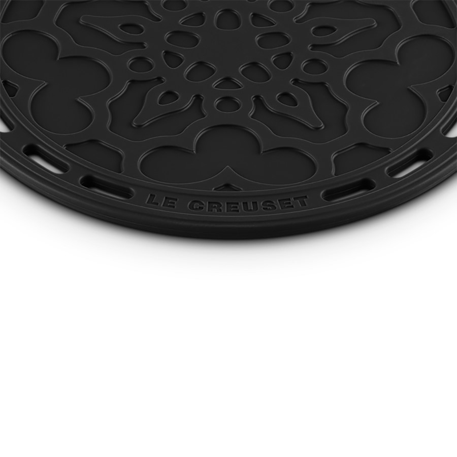 The Le Creuset French Trivet, made from durable silicone, combines practicality with style. Its heat-resistant design protects countertops and surfaces from hot pots and pans, while its non-slip surface ensures stability. The trivet features a classic, elegant pattern that complements any kitchen décor. Flexible yet sturdy, it can handle high temperatures and is easy to clean. The lightweight, non-absorbent silicone material makes it ideal for everyday use and adds a touch of sophistication to your dining setup. This trivet is both functional and stylish, perfect for any kitchen or table setting.