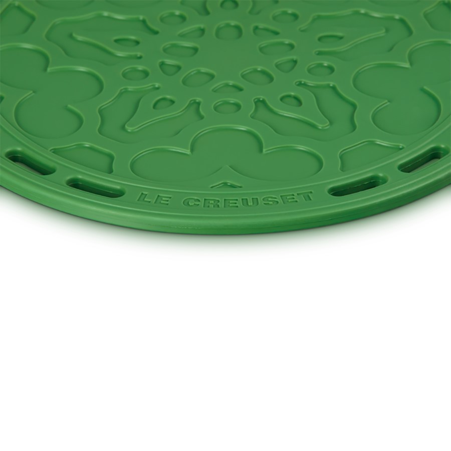 The Le Creuset French Trivet, made from durable silicone, combines practicality with style. Its heat-resistant design protects countertops and surfaces from hot pots and pans, while its non-slip surface ensures stability. The trivet features a classic, elegant pattern that complements any kitchen décor. Flexible yet sturdy, it can handle high temperatures and is easy to clean. The lightweight, non-absorbent silicone material makes it ideal for everyday use and adds a touch of sophistication to your dining setup. This trivet is both functional and stylish, perfect for any kitchen or table setting.